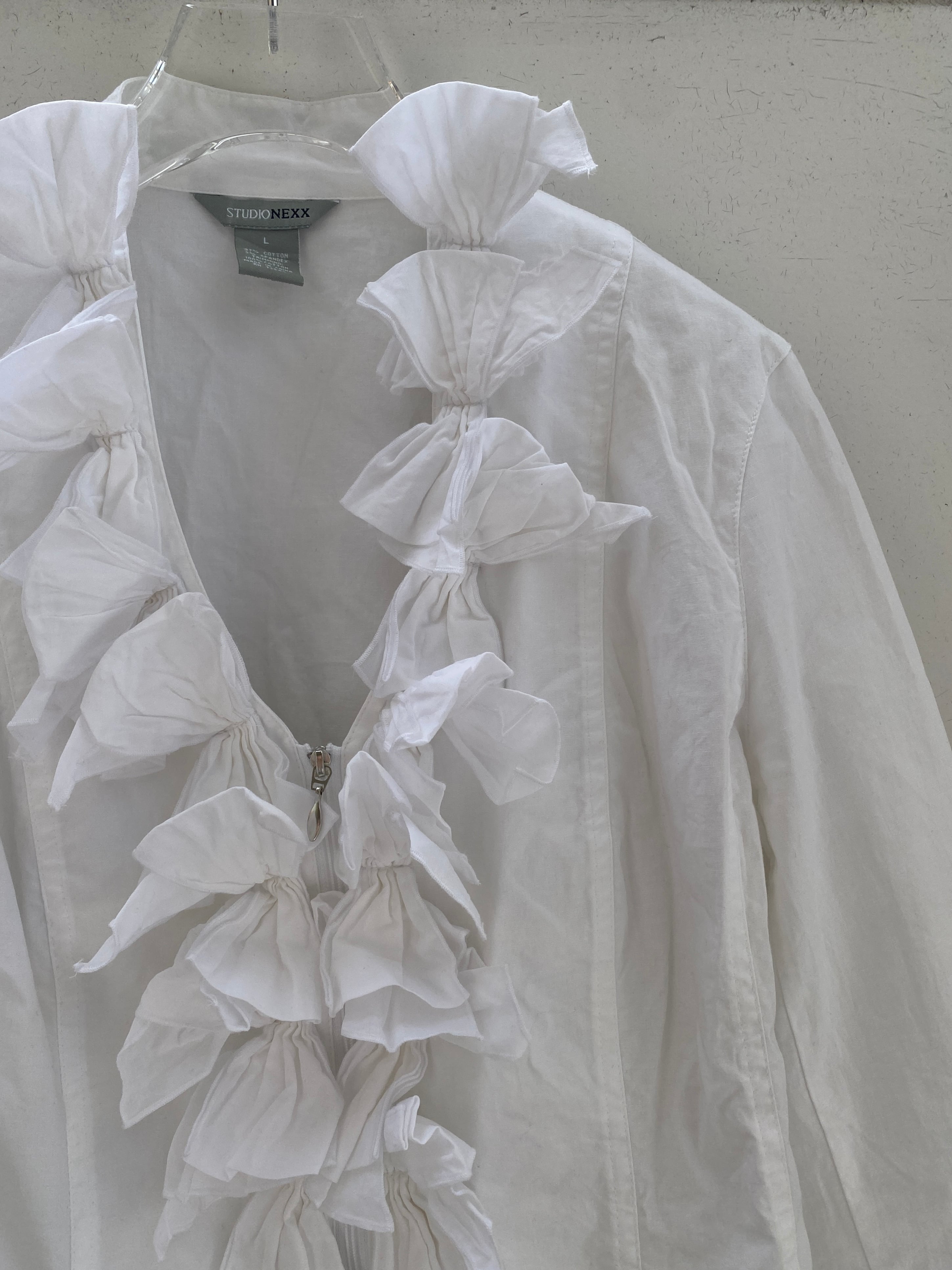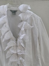 リボンと言うよりも変形のフリルの様なデザインで、決して甘くなくモードに見えるのがポイントです。