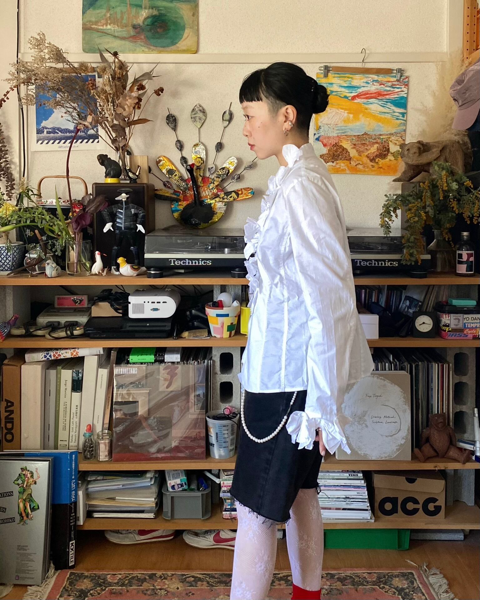 ドレス感が強くなるので、どこかしらにカジュアルさをプラスするとより個性的+デイリーに着用しやすいかと。