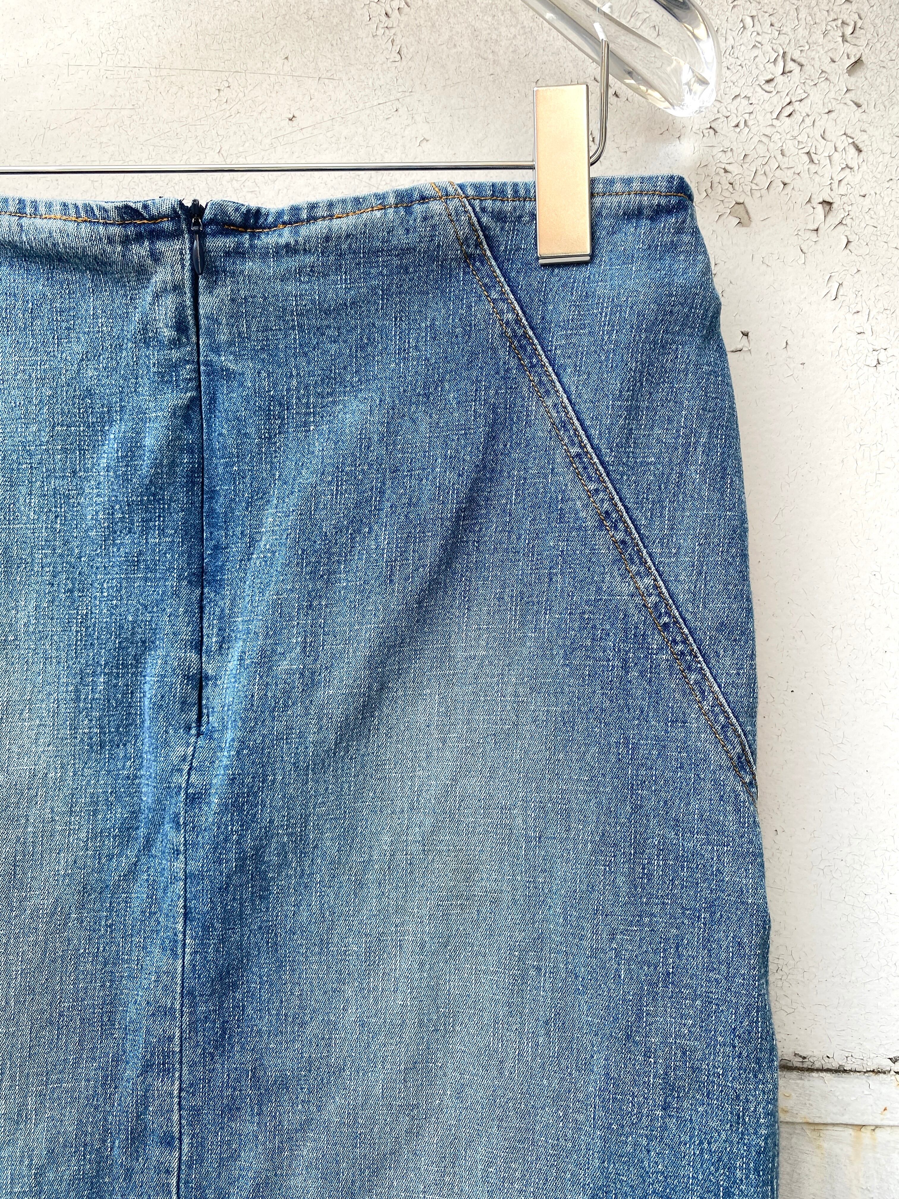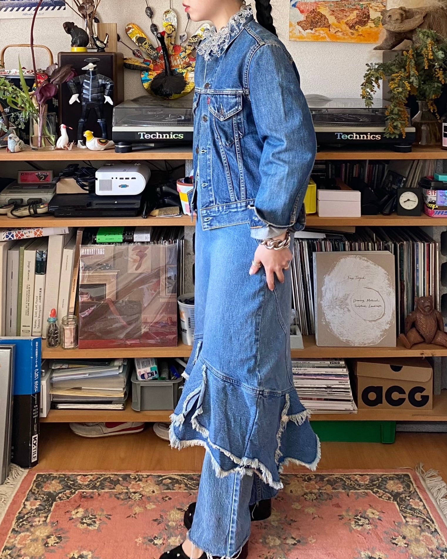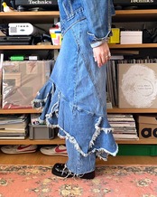 ローライズ、裾のフリルとボディコンシャスなシルエットがかわいいデニムのマーメイドスカート。