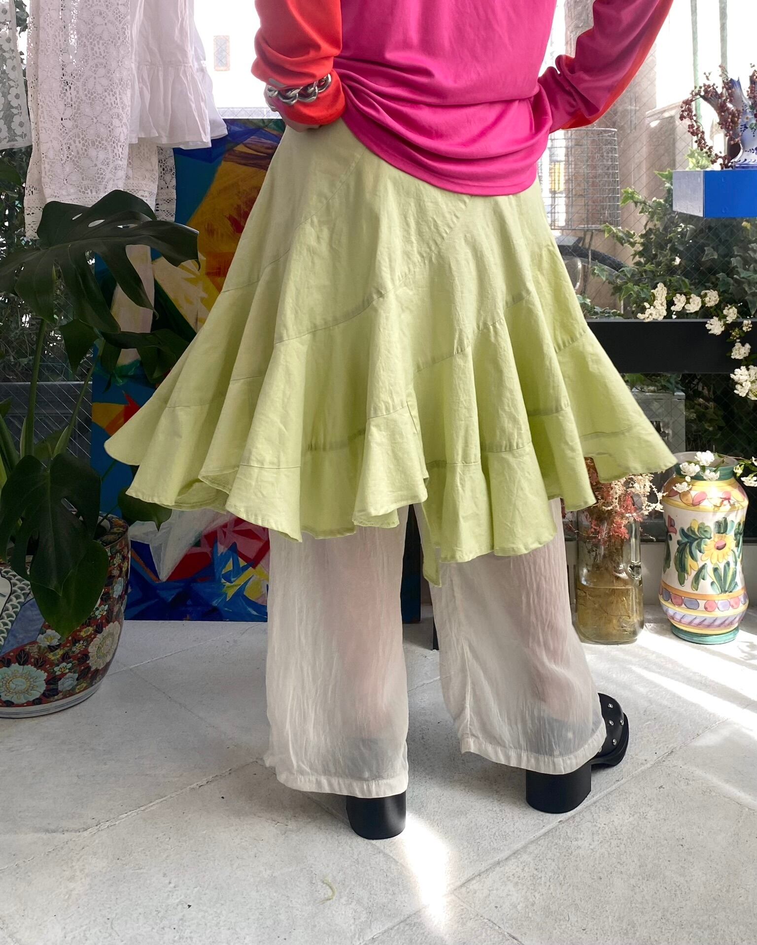 ピスタチオカラーが可愛いコットンフレアスカート。