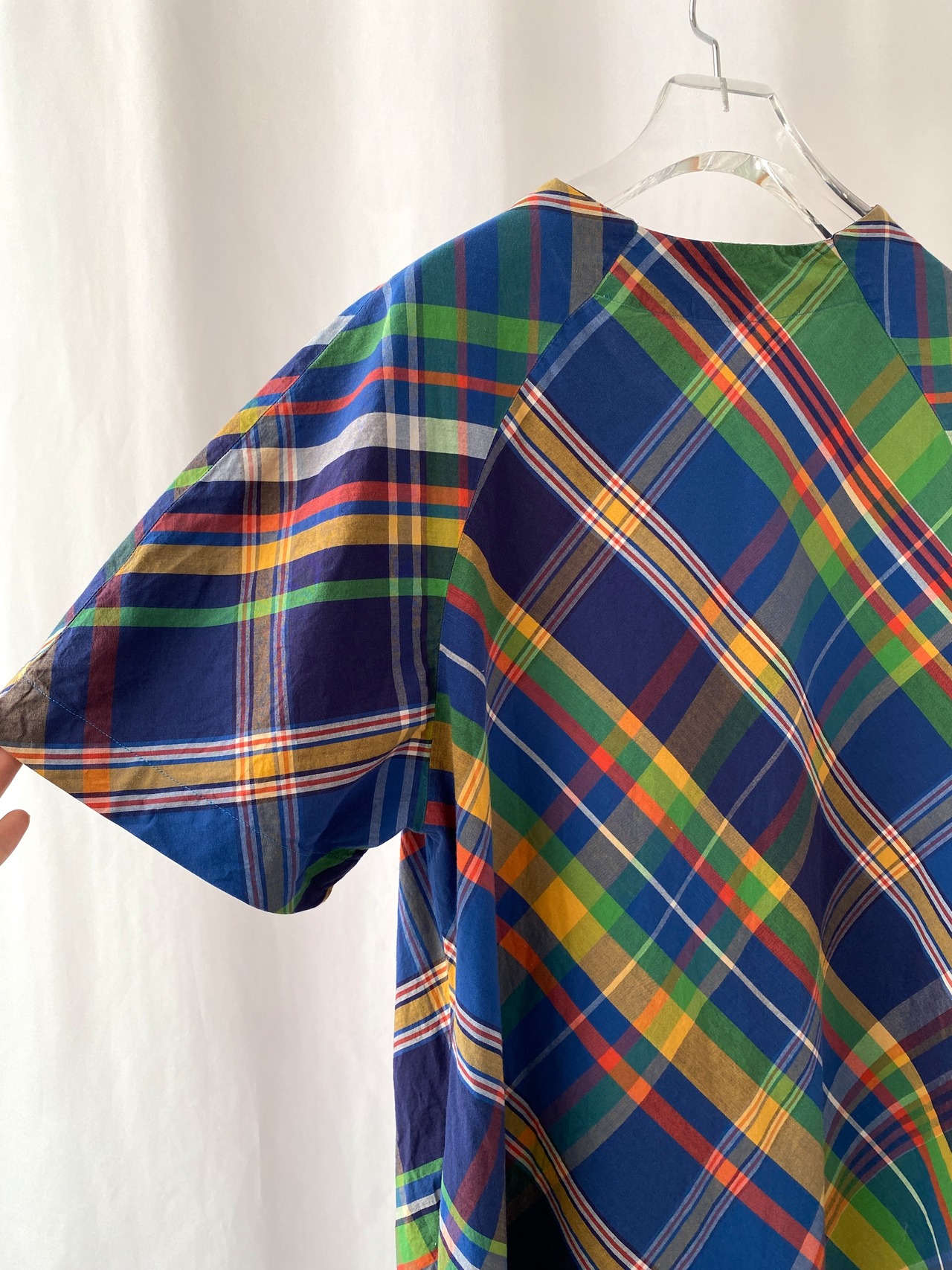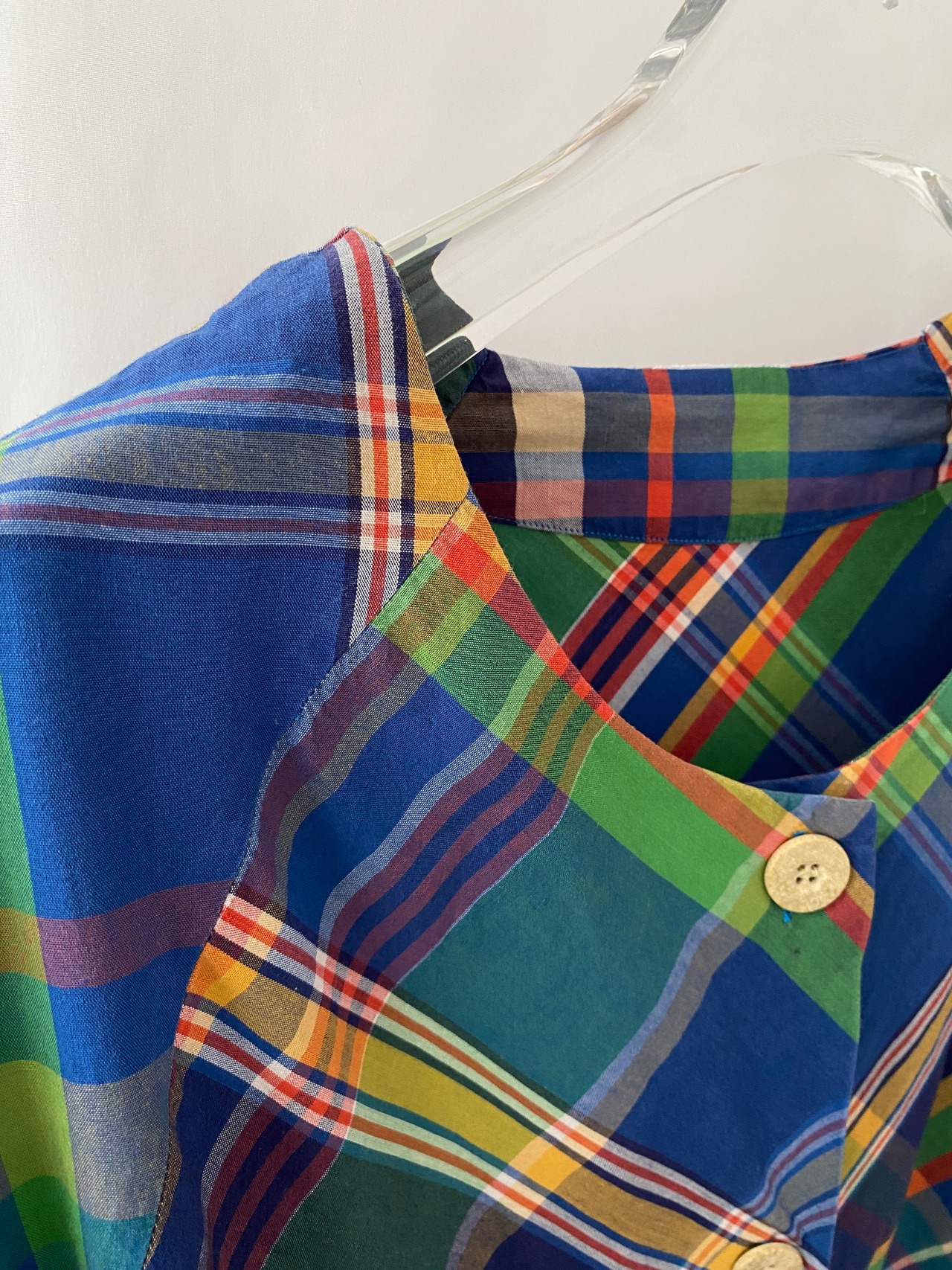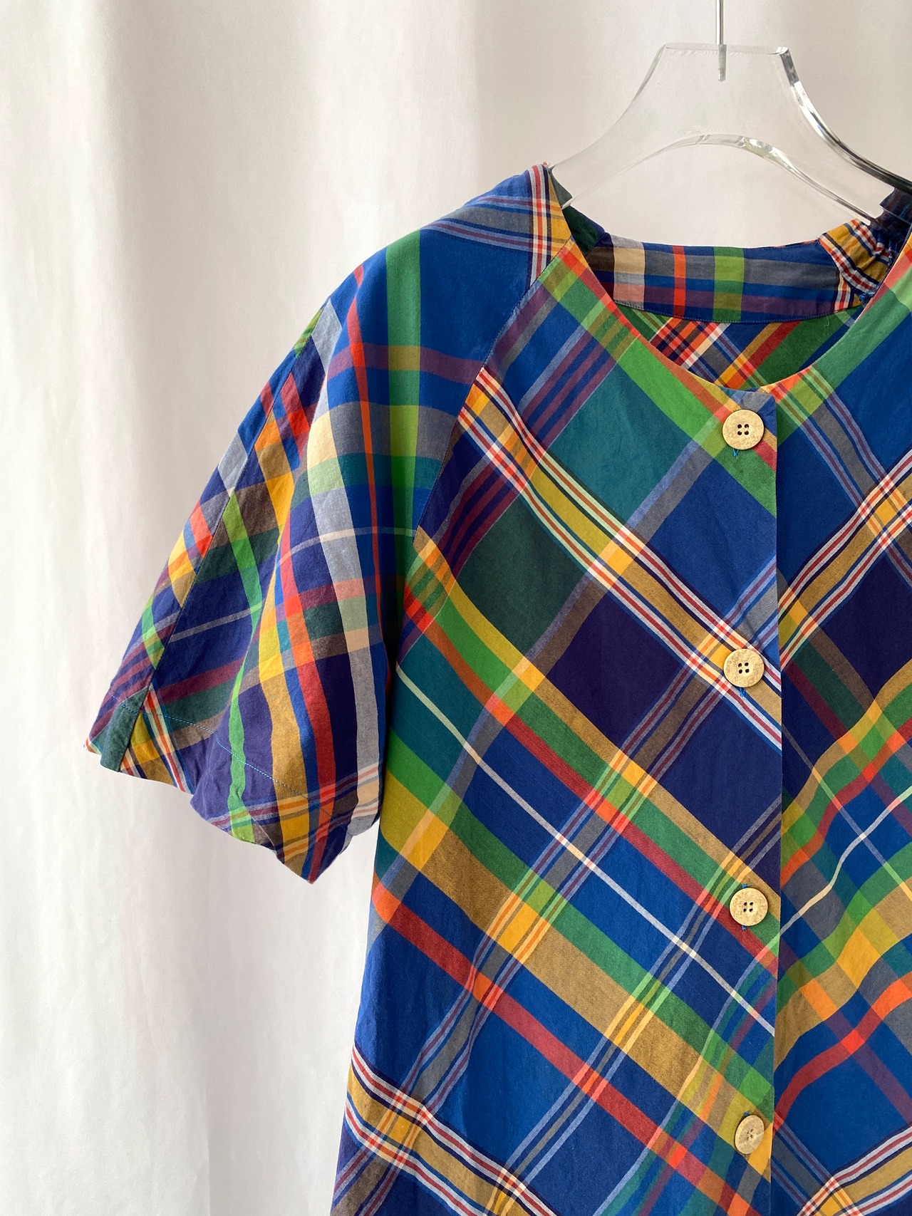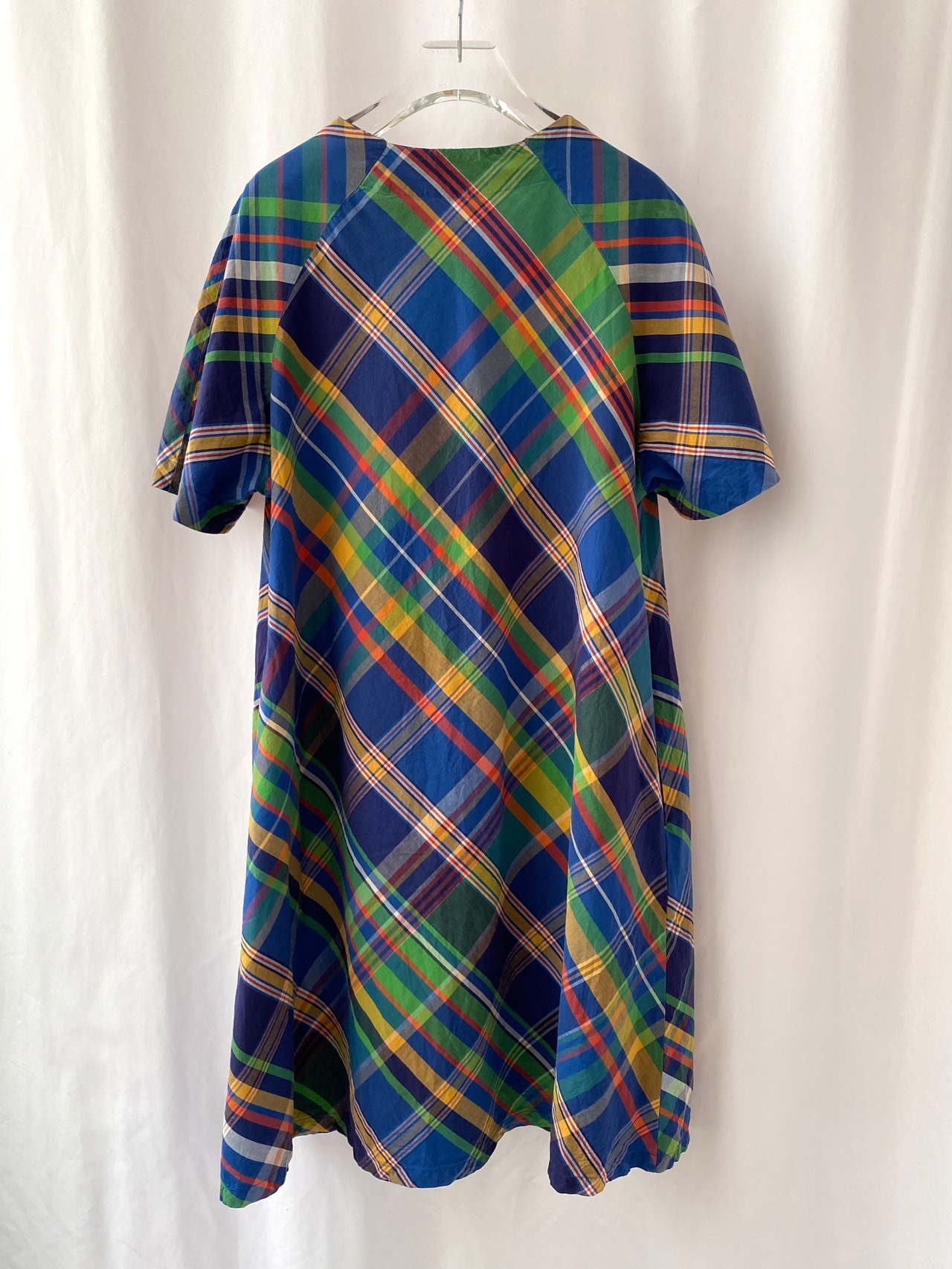old cottonのテキスタイルを使用したチェック柄ワンピース。