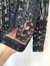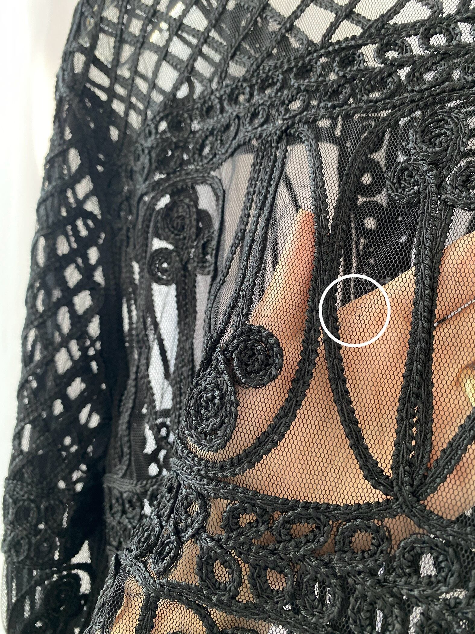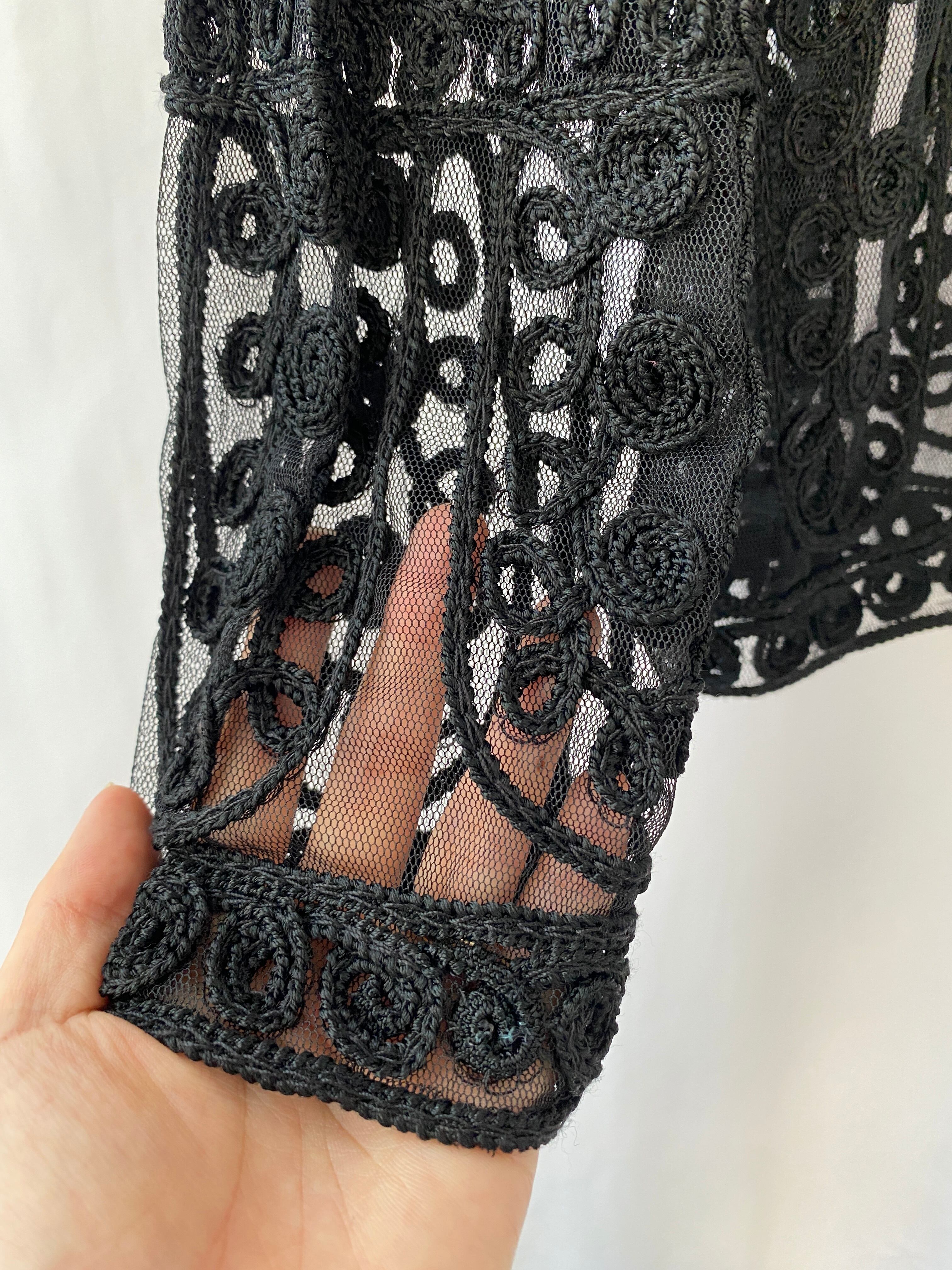 透け感のあるチュール生地をベースに立体的なコードのデザインが全面に施されたカーディガン。