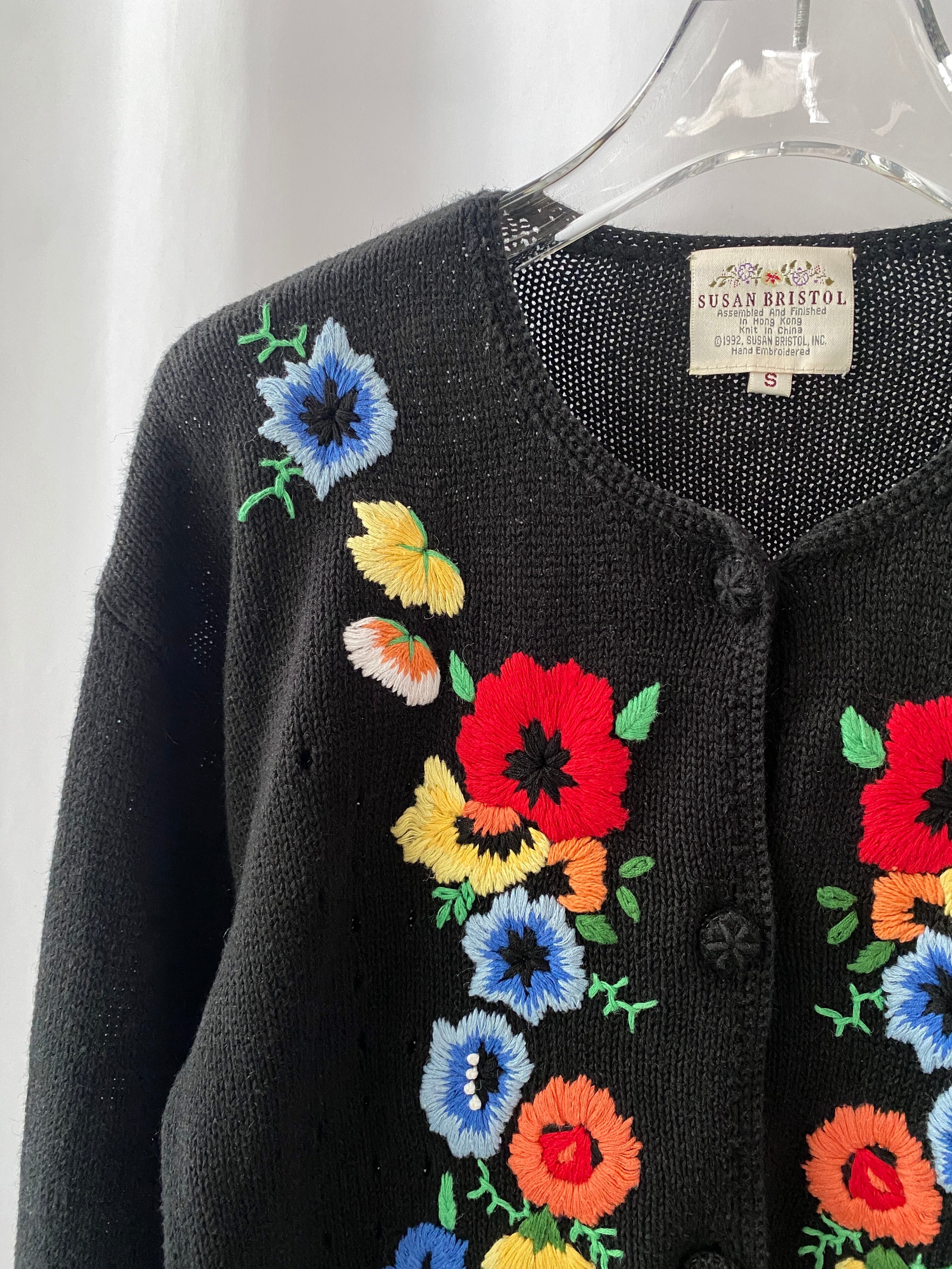 90s embroidery flower cardigan
