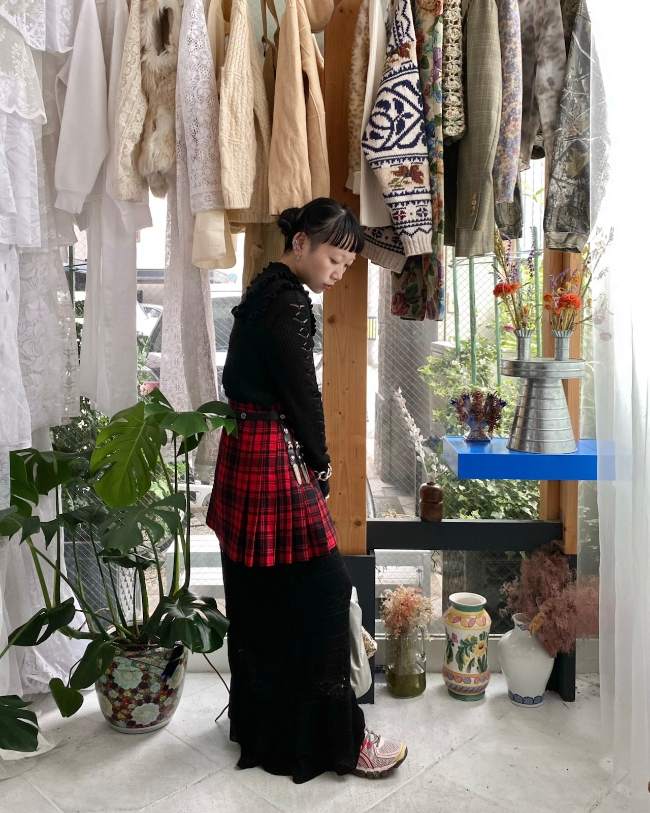 今季トレンドのチェック柄、スタンダードなプリーツスカートは時代を感じるビンテージもので取り入れるのがおすすめです。