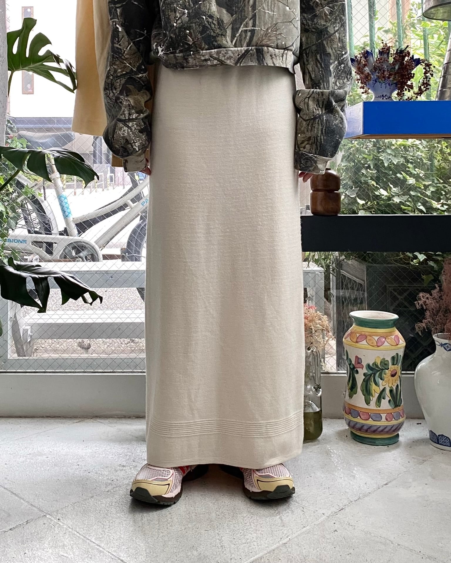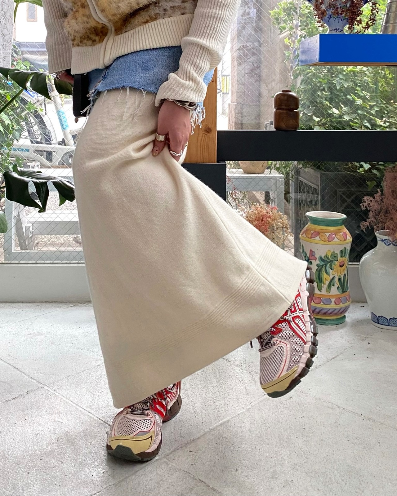 冬に着たくなる白、シンプルかつ万能なニットマキシスカート。