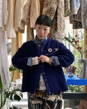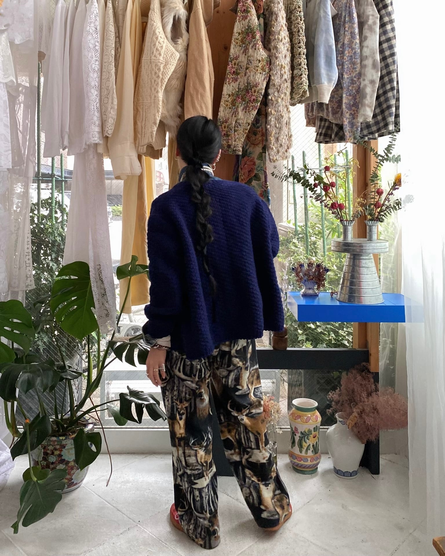 クラシックな雰囲気のハンドメイドニットカーディガン。