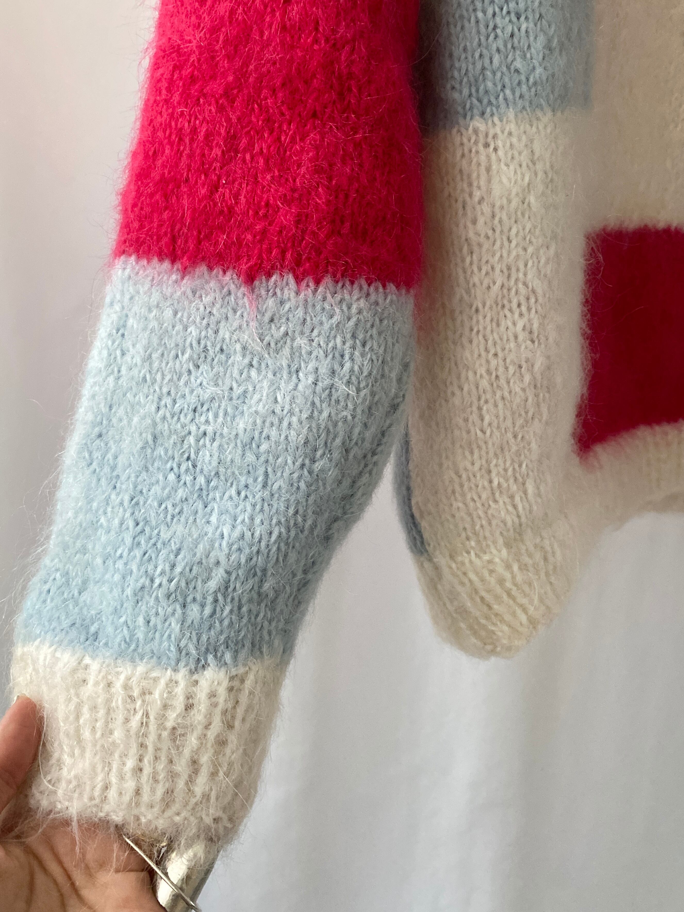 全方位から見てバランスの良い配色 、popなカラーとふわふわ毛足のモヘアが可愛いセーター。