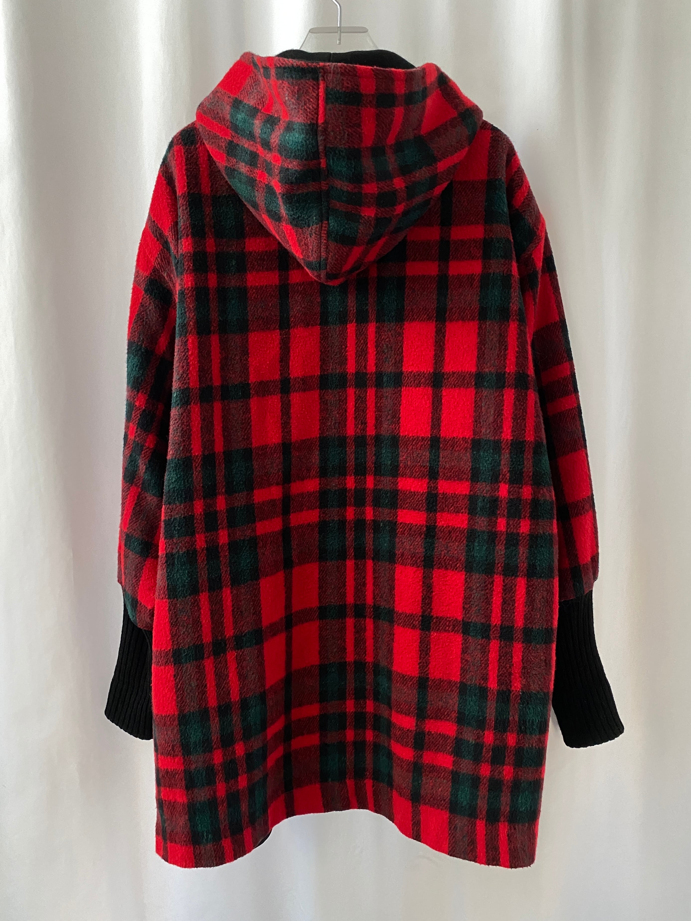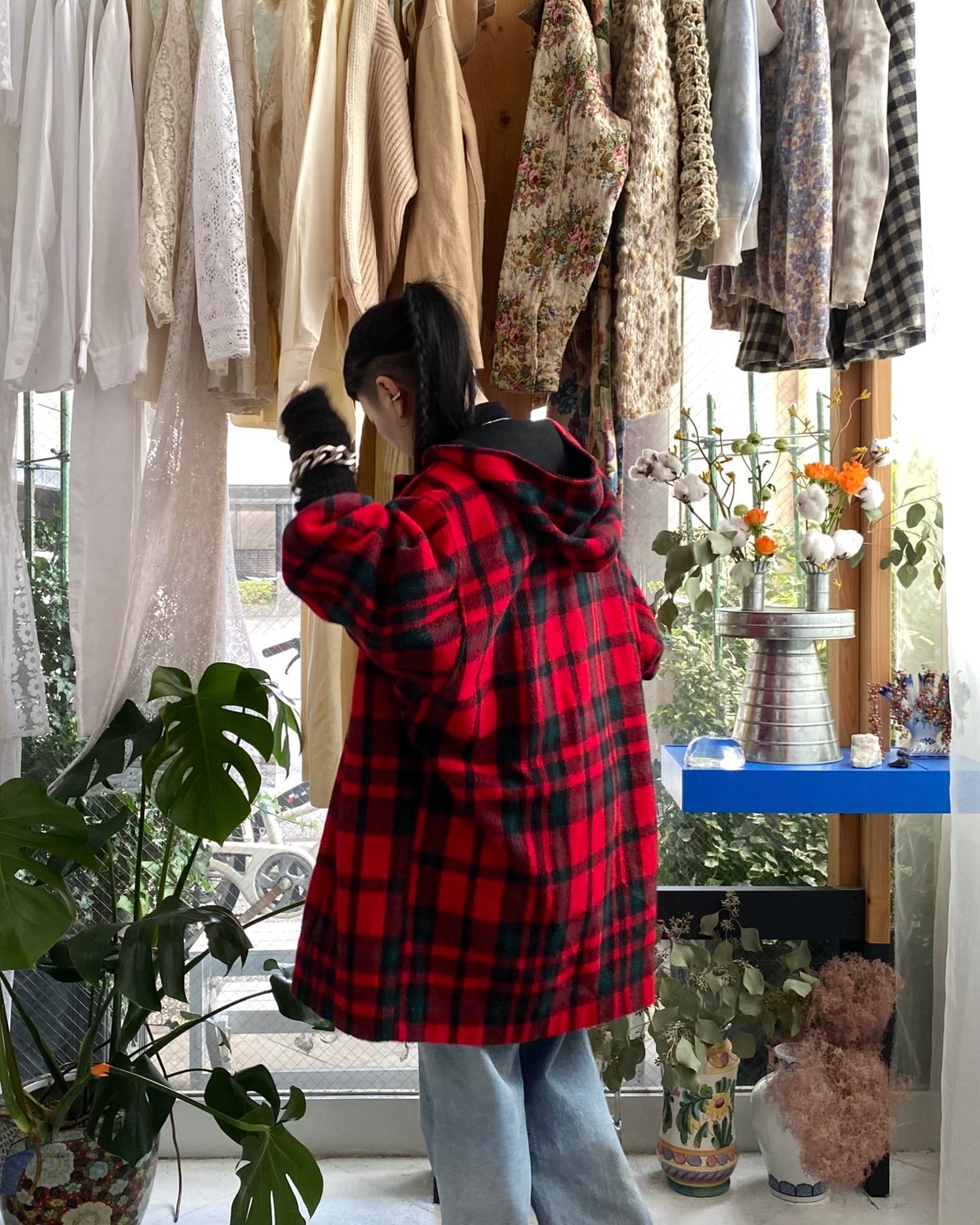 トレンドのチェックを取り入れるならアウターから、デザイン性のある個性的なハーフウールコート。