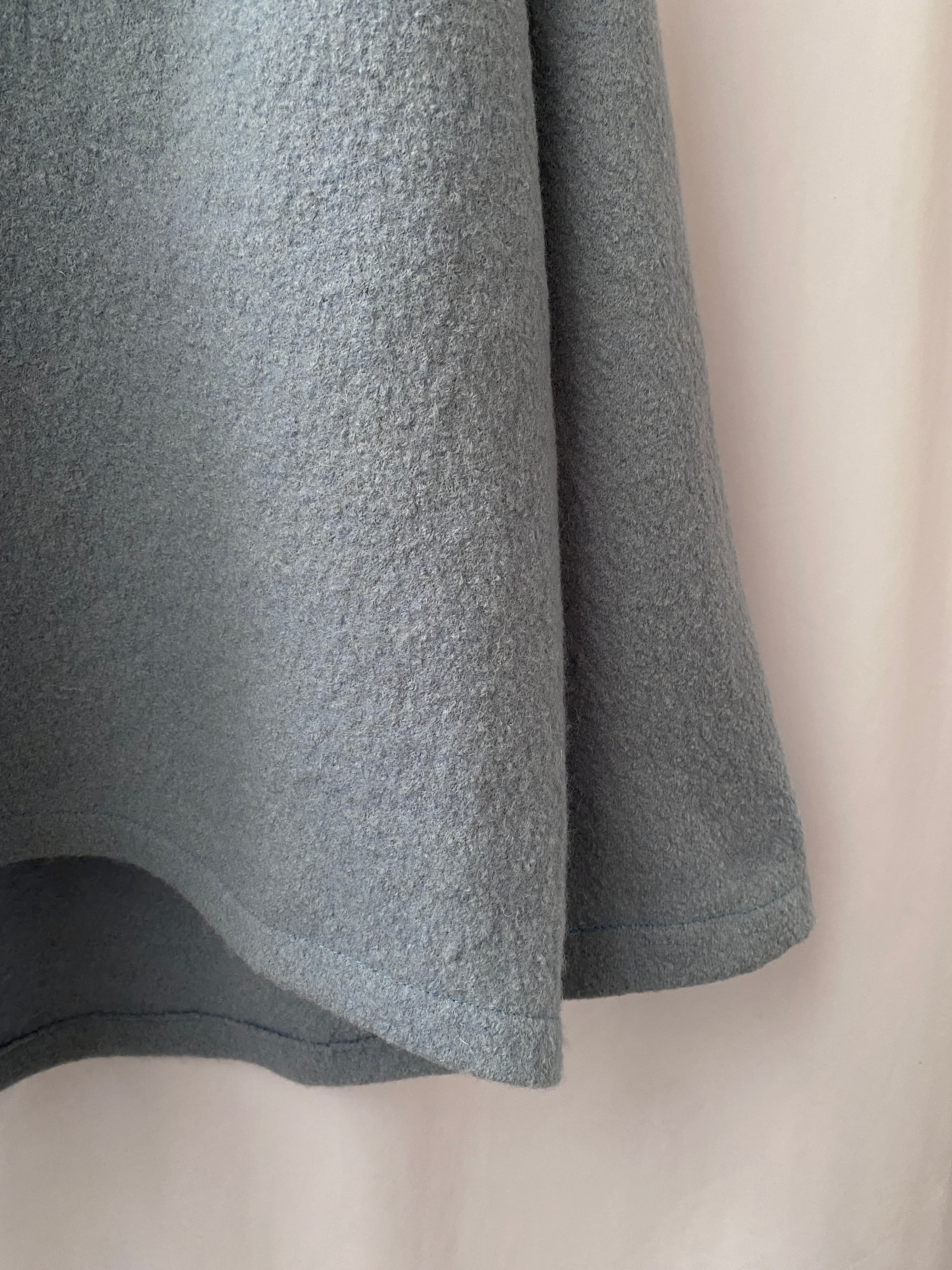 ネップの様な凹凸のある特殊なウールの生地をベースにマント風のAラインシルエットがキレイな一着。