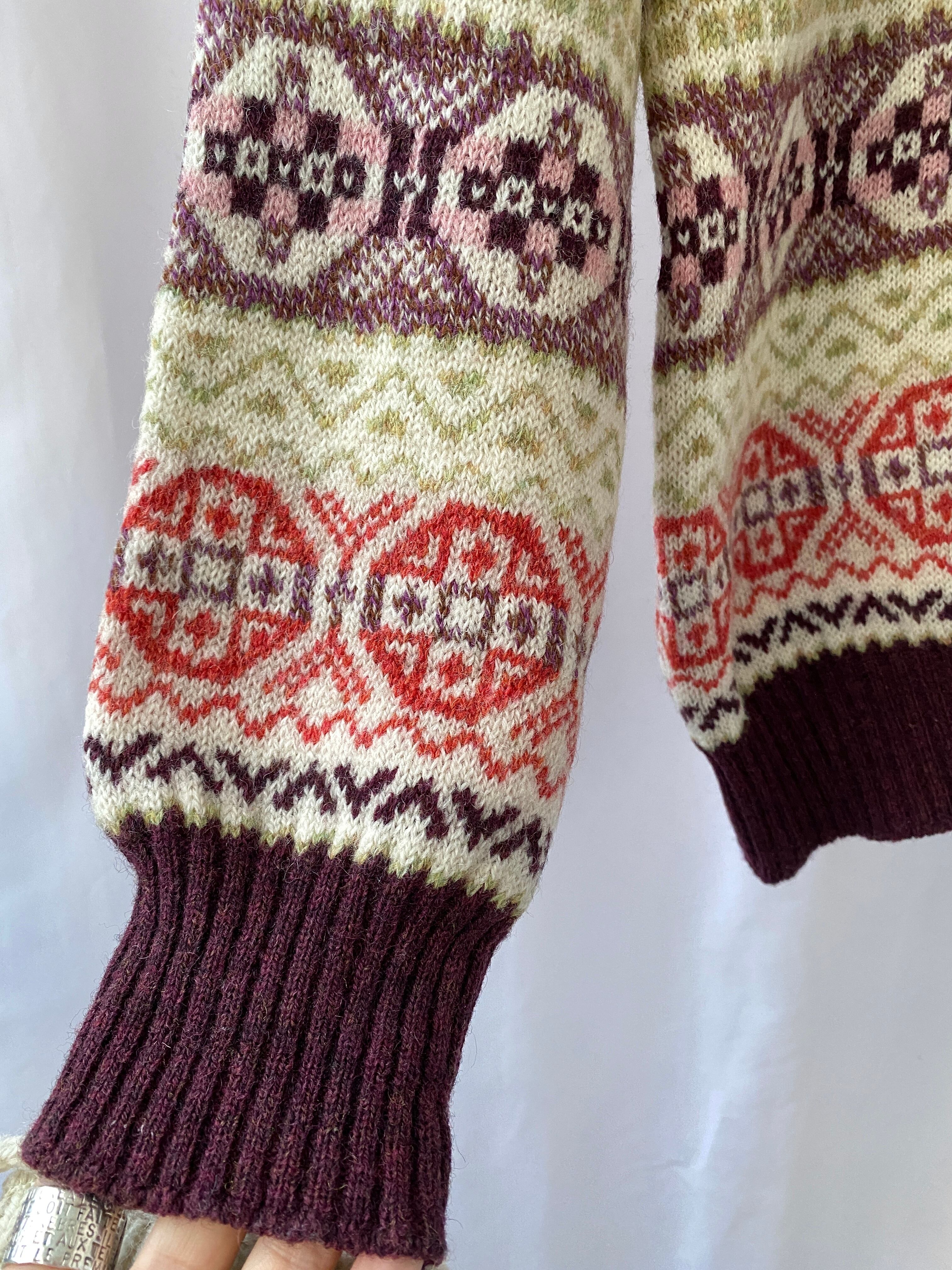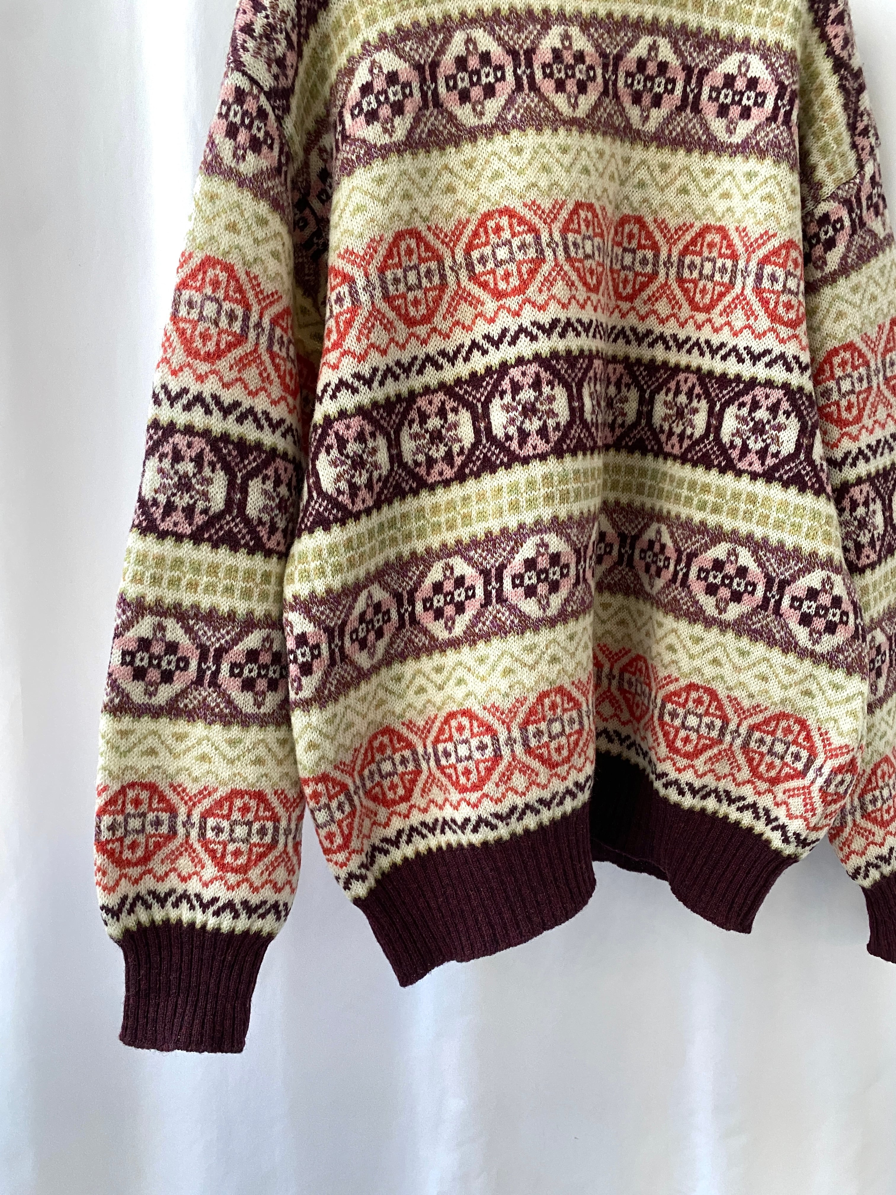 カラフルながら大人っぽいシックなカラーリングが魅力的なsisleyの総柄セーター。