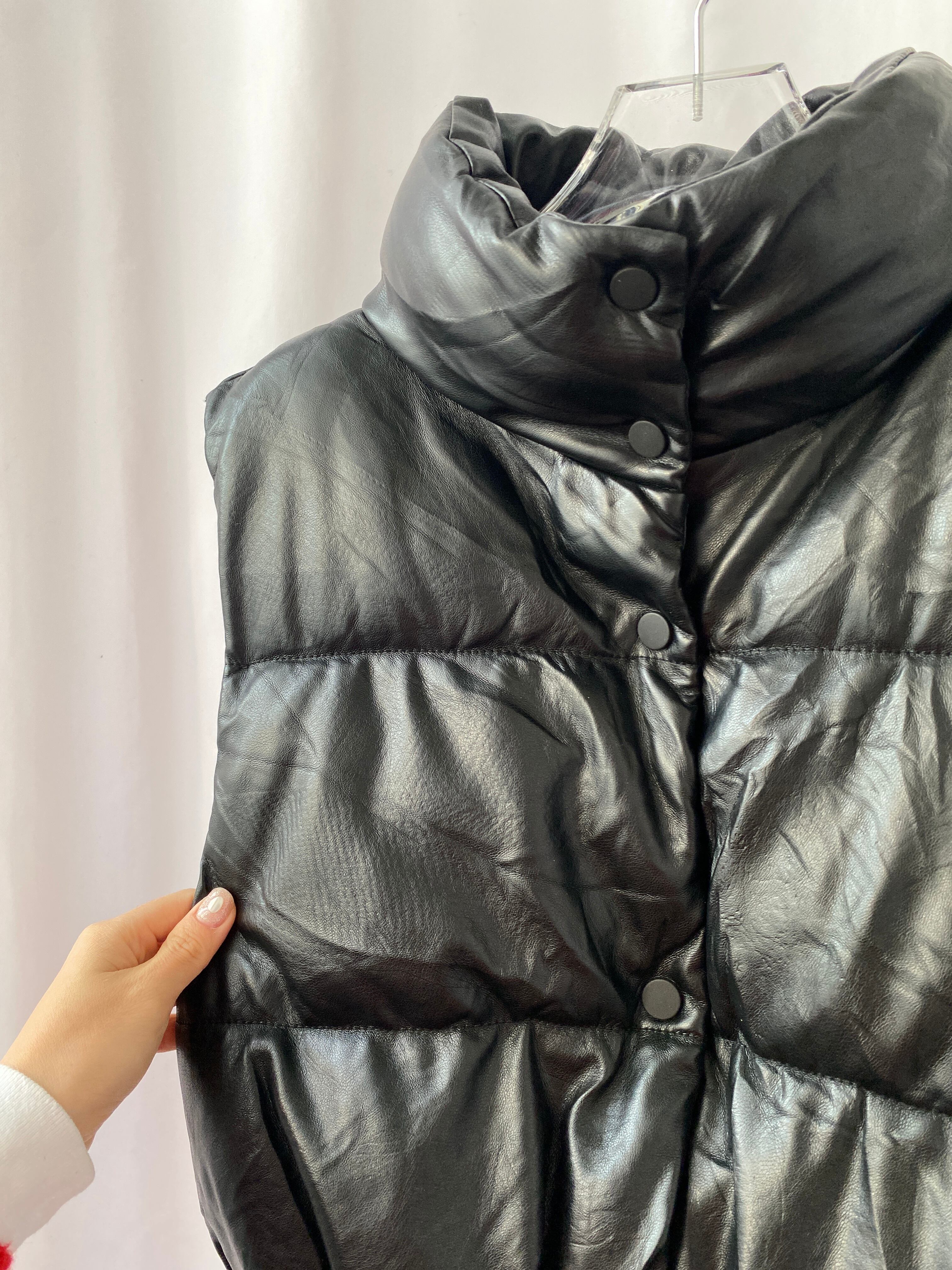 中綿による丸みを帯びたシルエットが可愛いエコレザーベスト。
