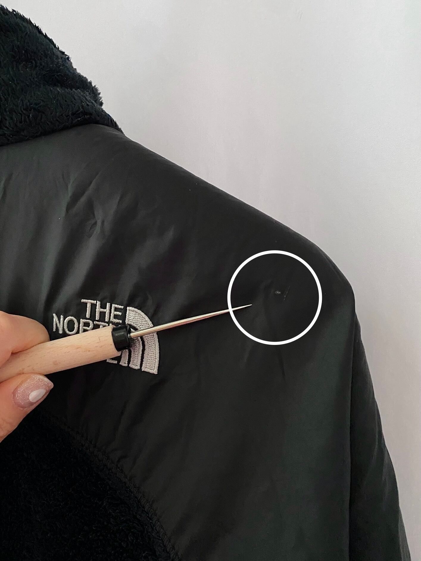 元々は片袖のナイロン生地にダメージがあったものの補修跡にカバーをする目的だったのですが、