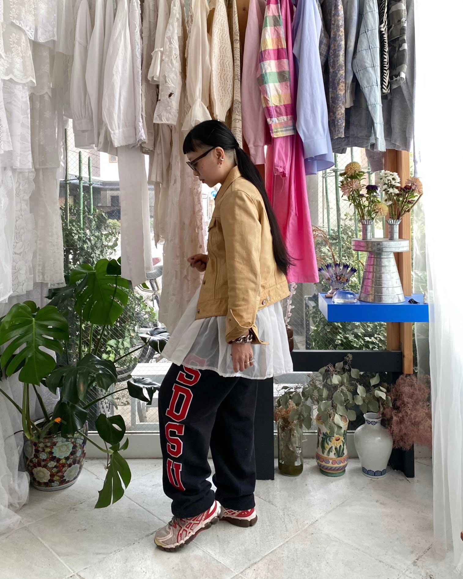 メンズもののSで女性だと大きすぎず、タイト過ぎないサイズ感での着用が可能。