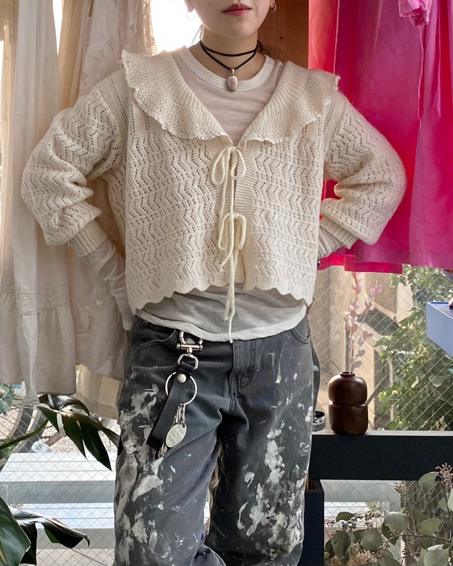 部位によって複数の編み模様を採用しており、ヘムラインのスカラップもかわいいポイントです。