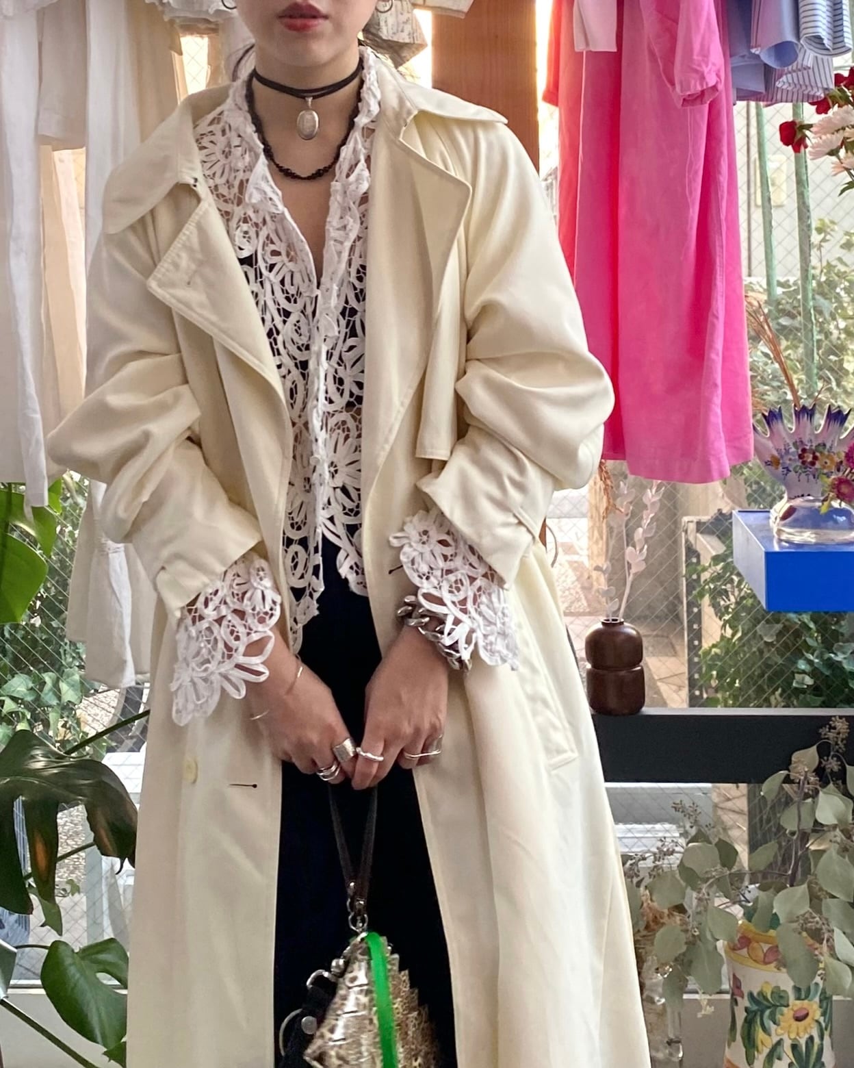 身体に沿うコンパクトなサイズ感でウエストがややシェイプされています。腰にかけての柔らかなフレアと袖元のスリーブも非常にクラシックで美しいシルエットです。