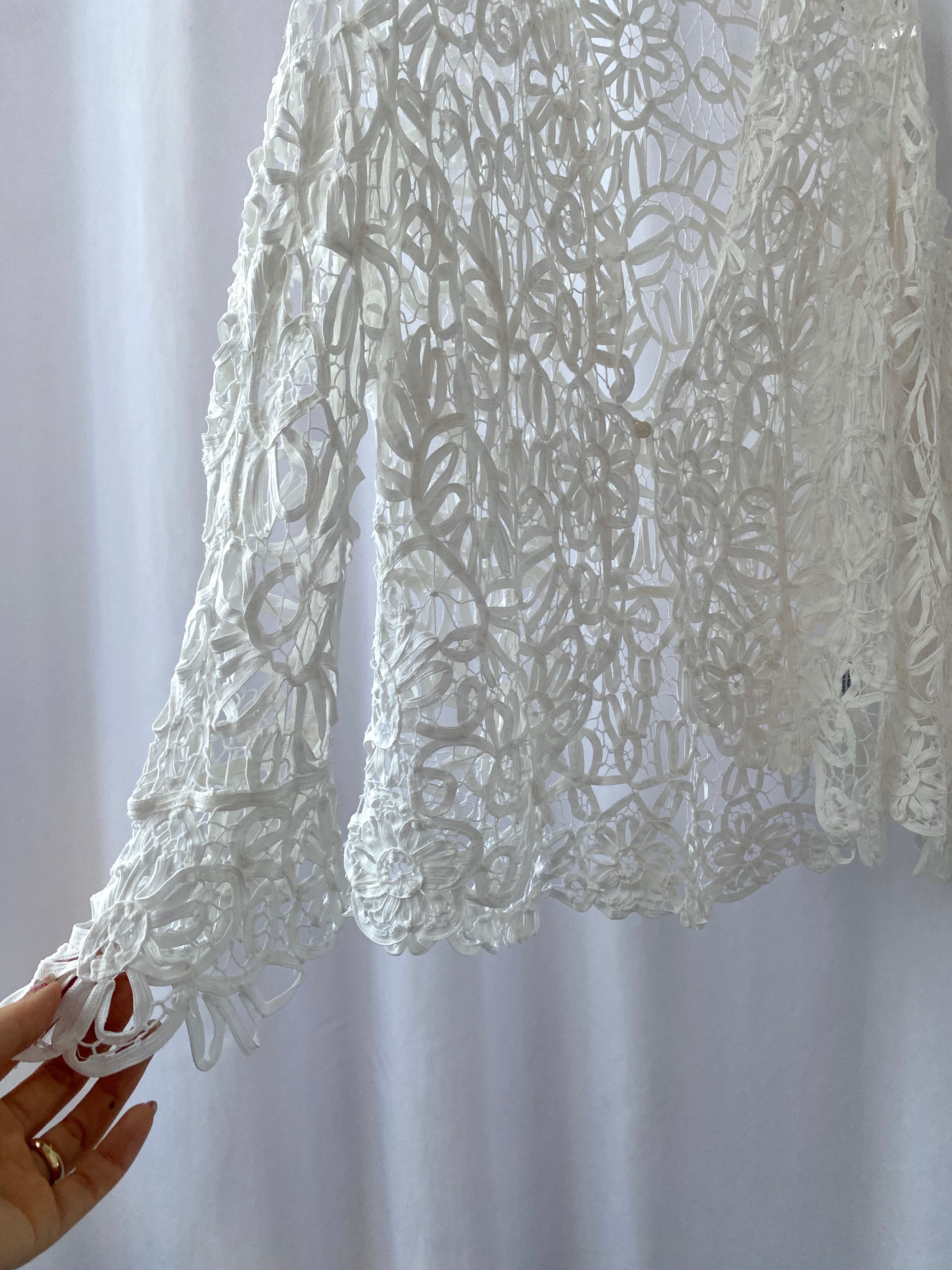 素肌に直接着用して抜け感に使うのがイチオシの総クロシェカーディガン。