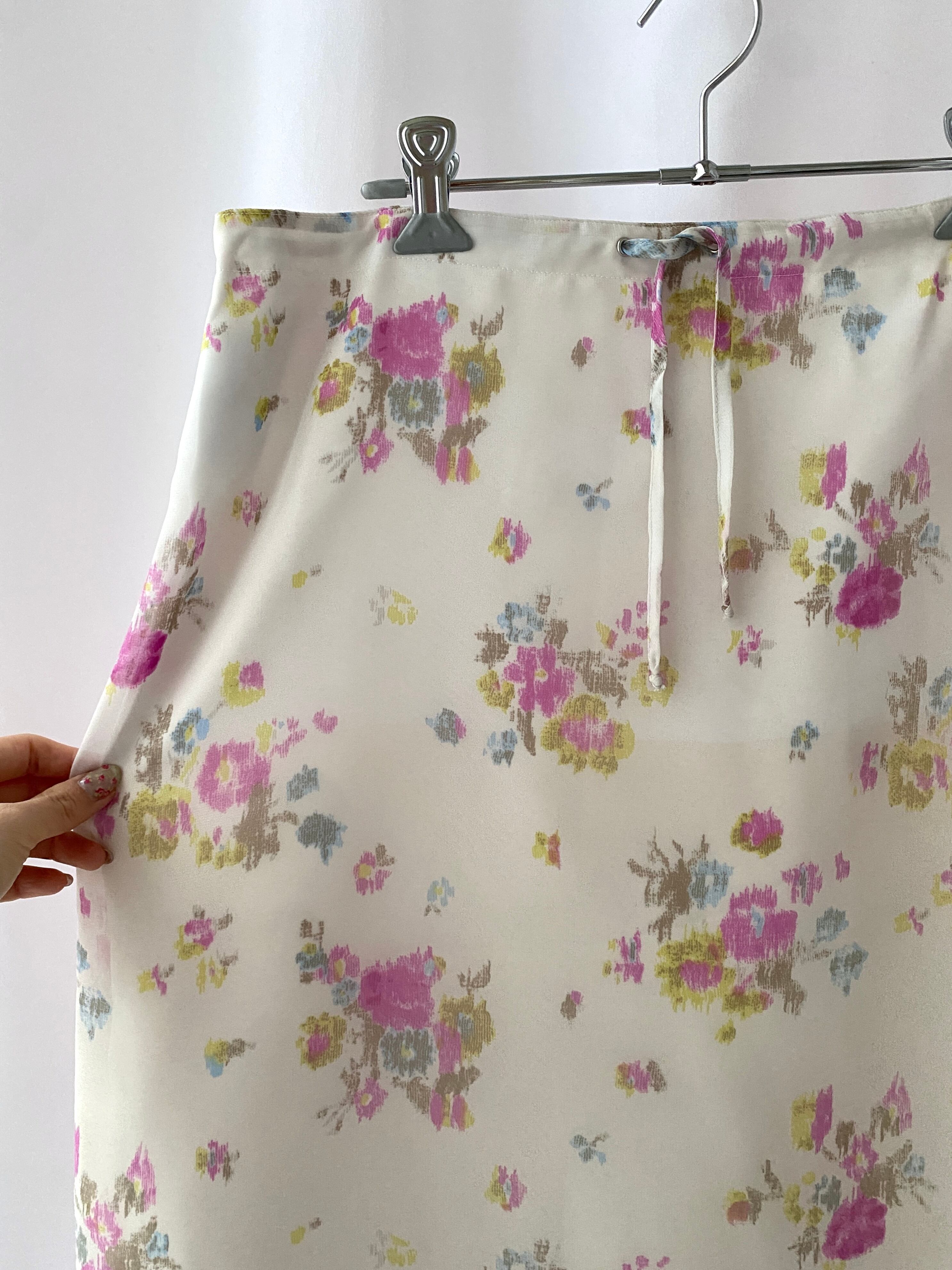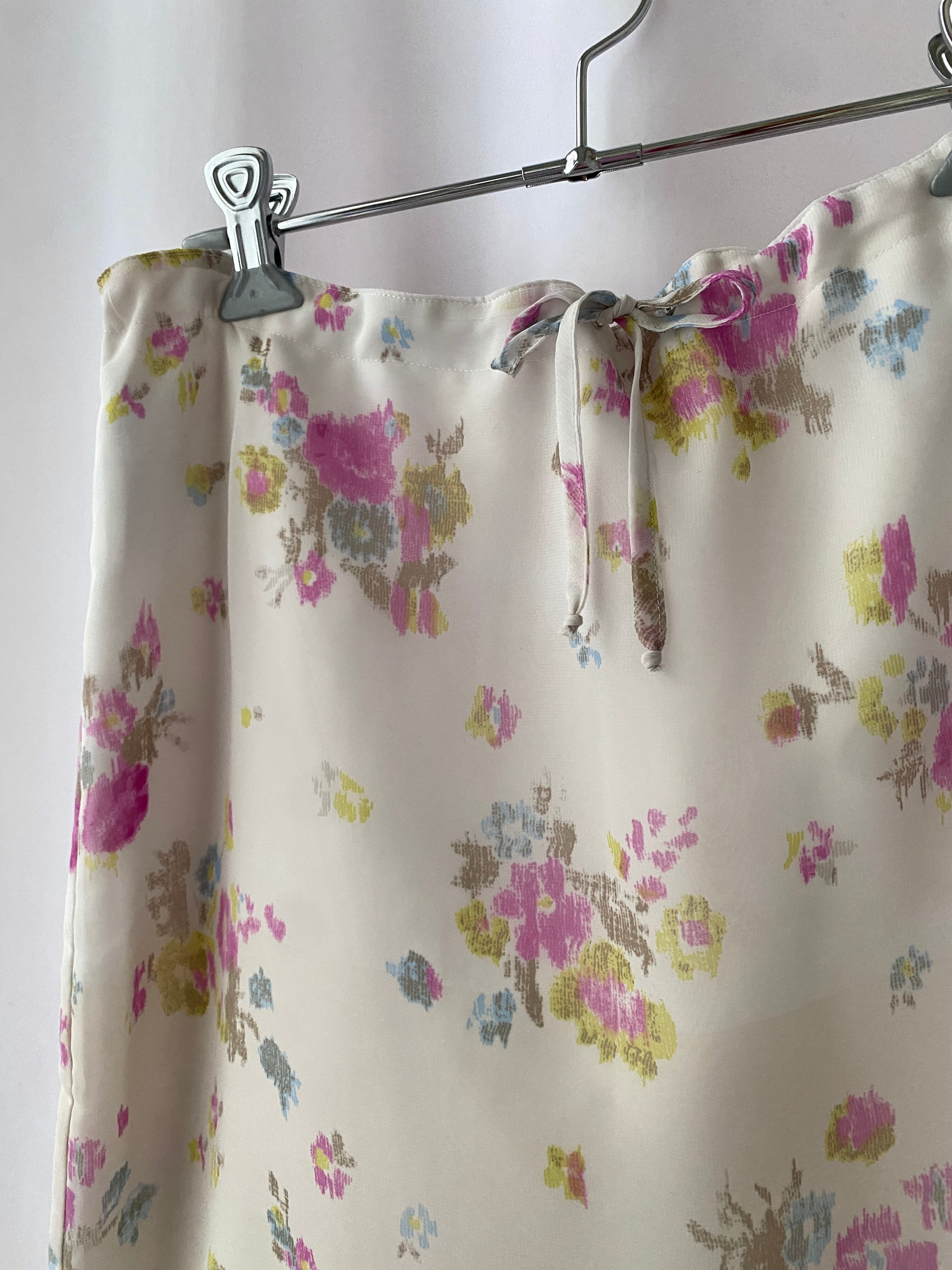 ぼかした水彩画の様なあいまいな輪郭のフラワーパターンが個性的ですね。