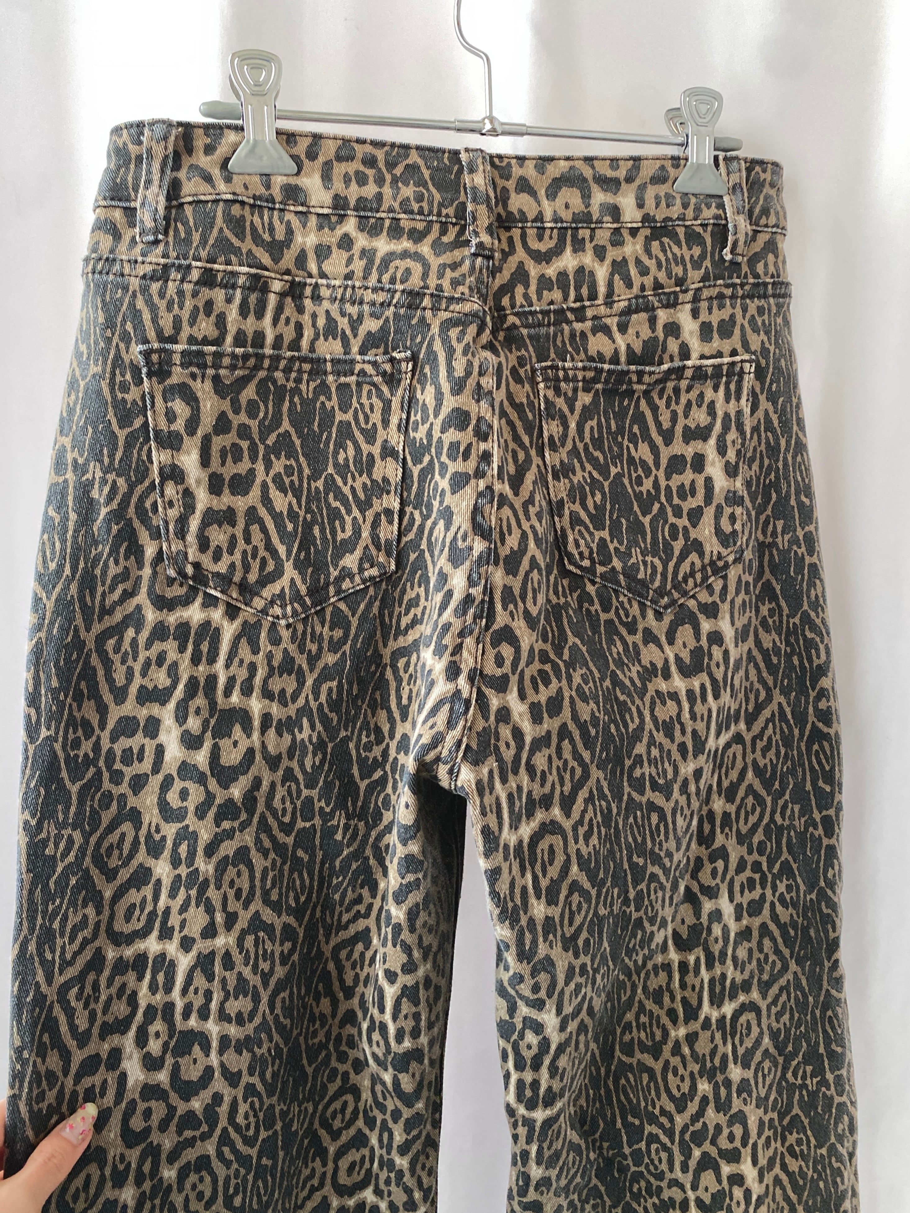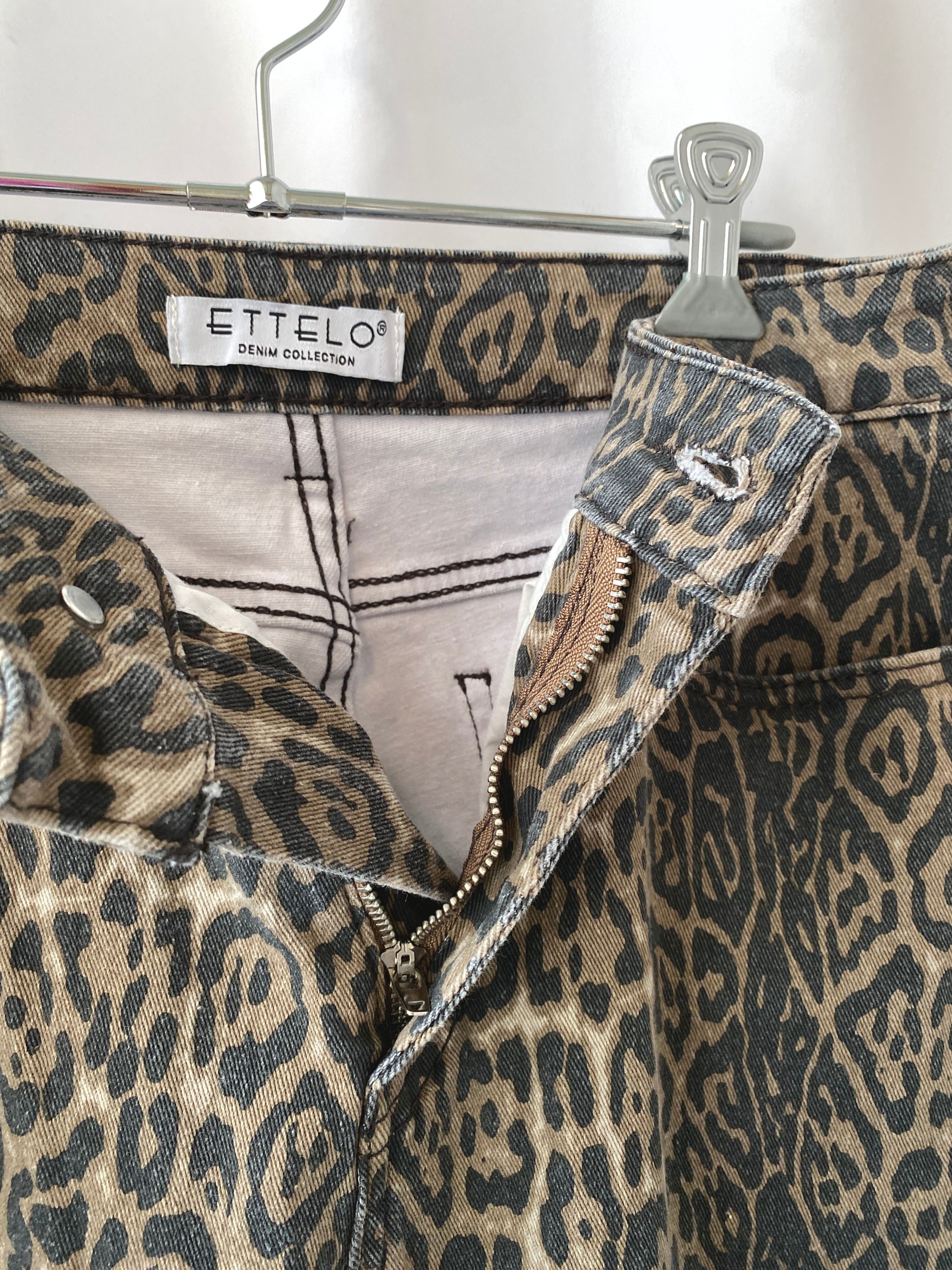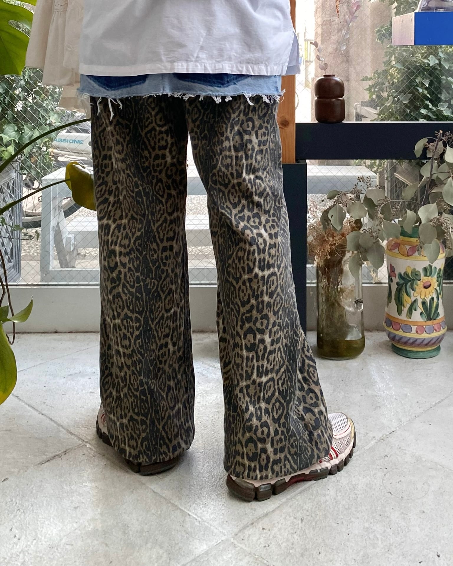 履き心地の良いストレッチが効いたレオパードデニムパンツ。