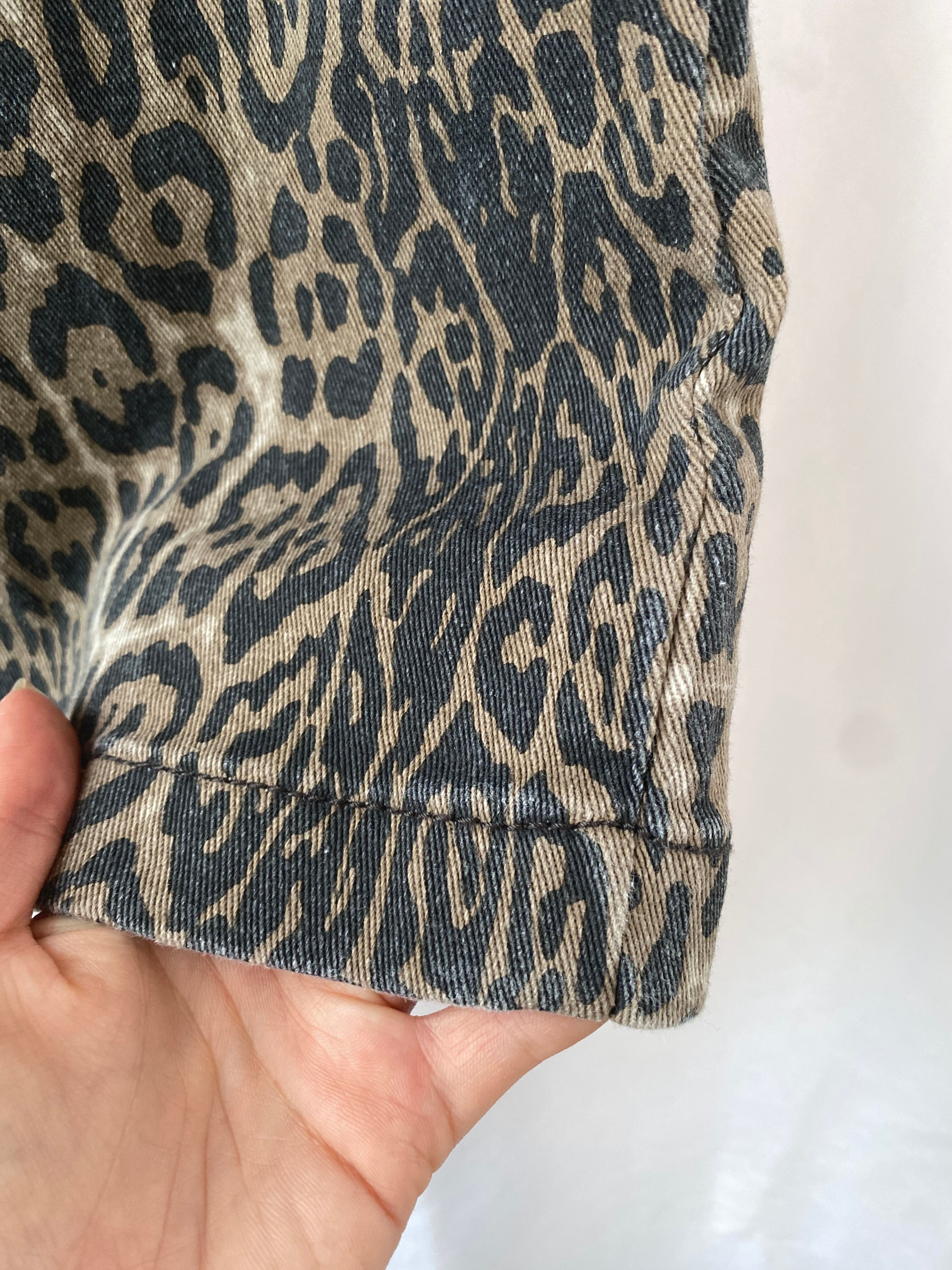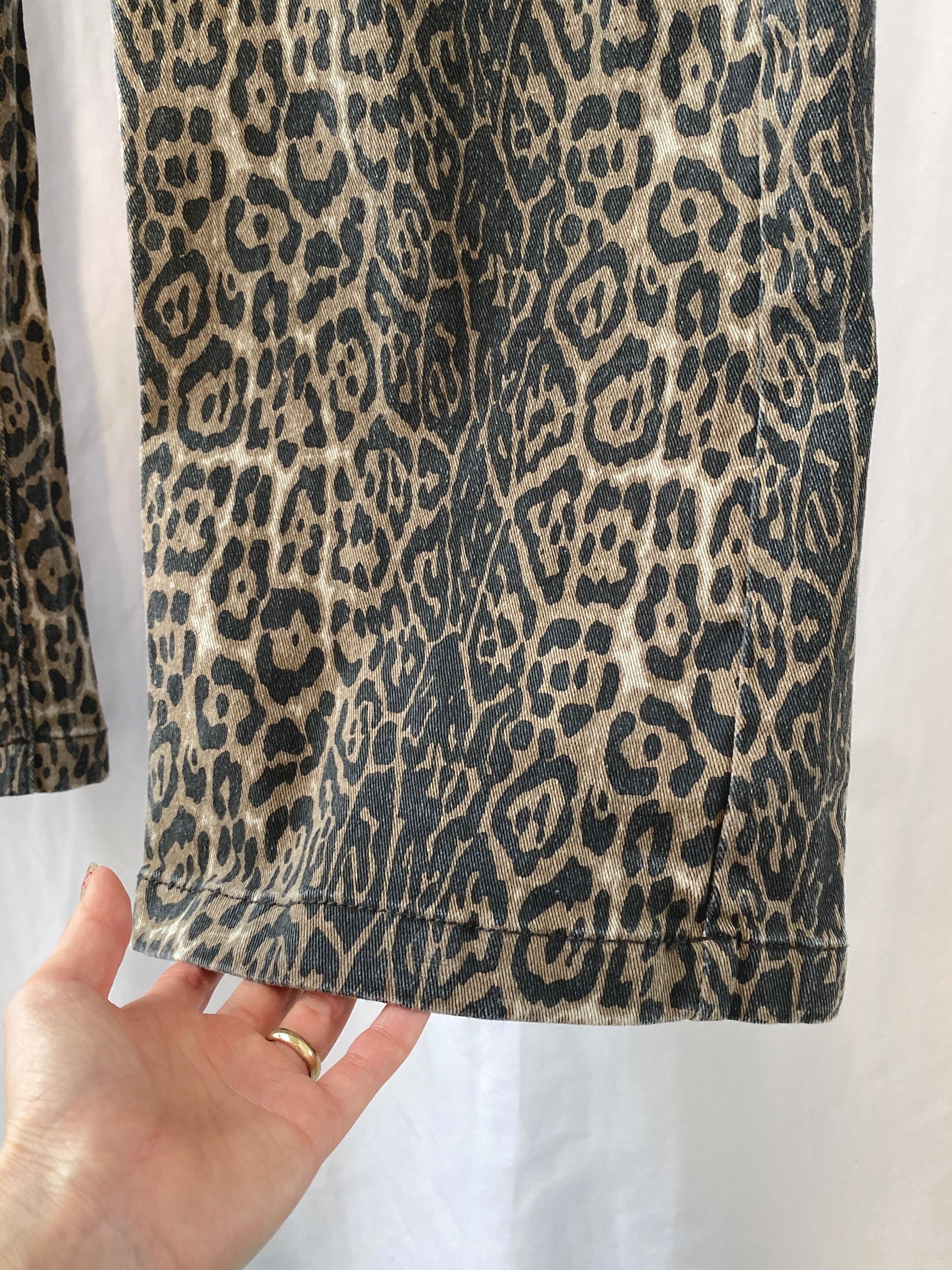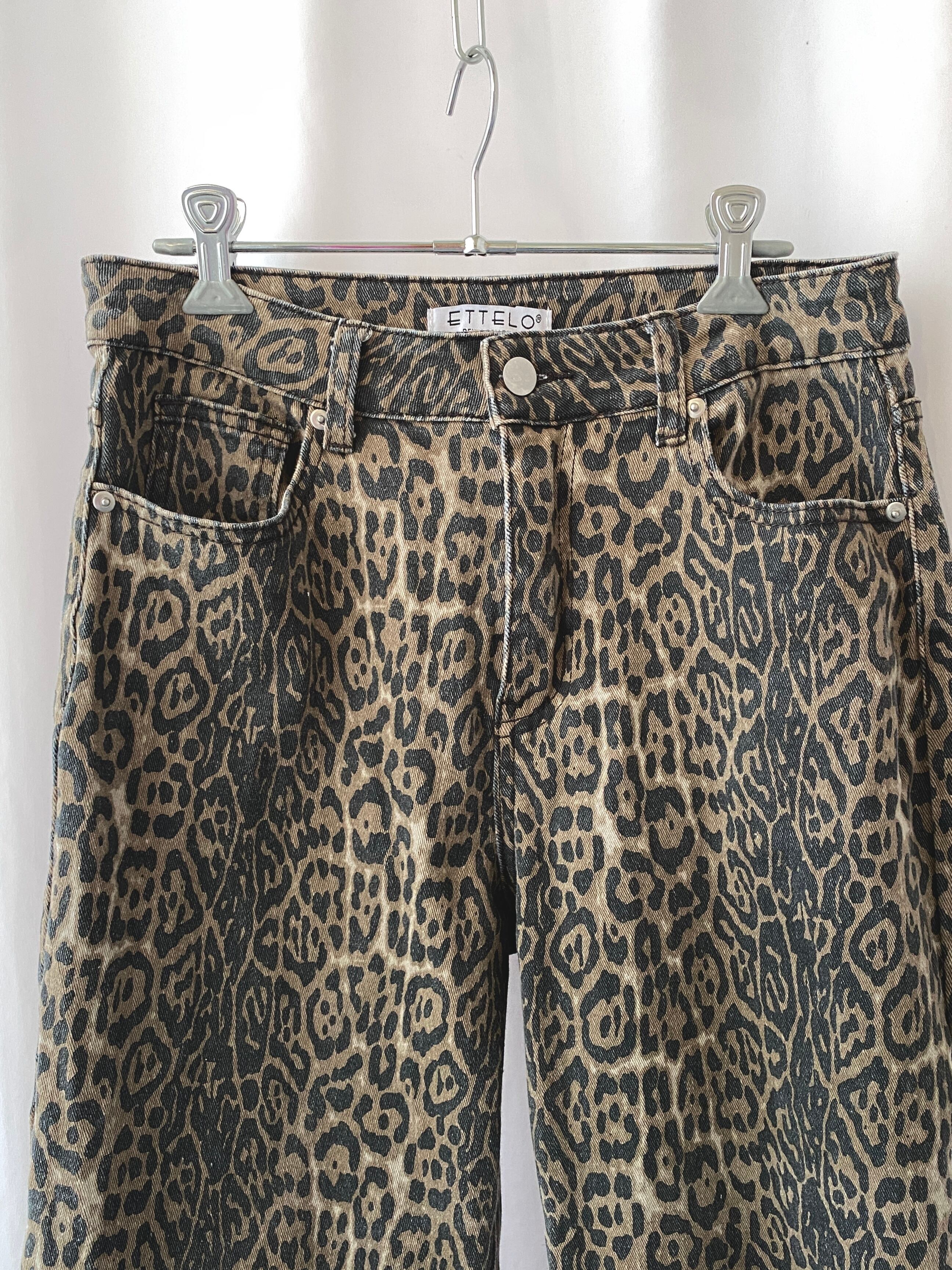履き心地の良いストレッチが効いたレオパードデニムパンツ。