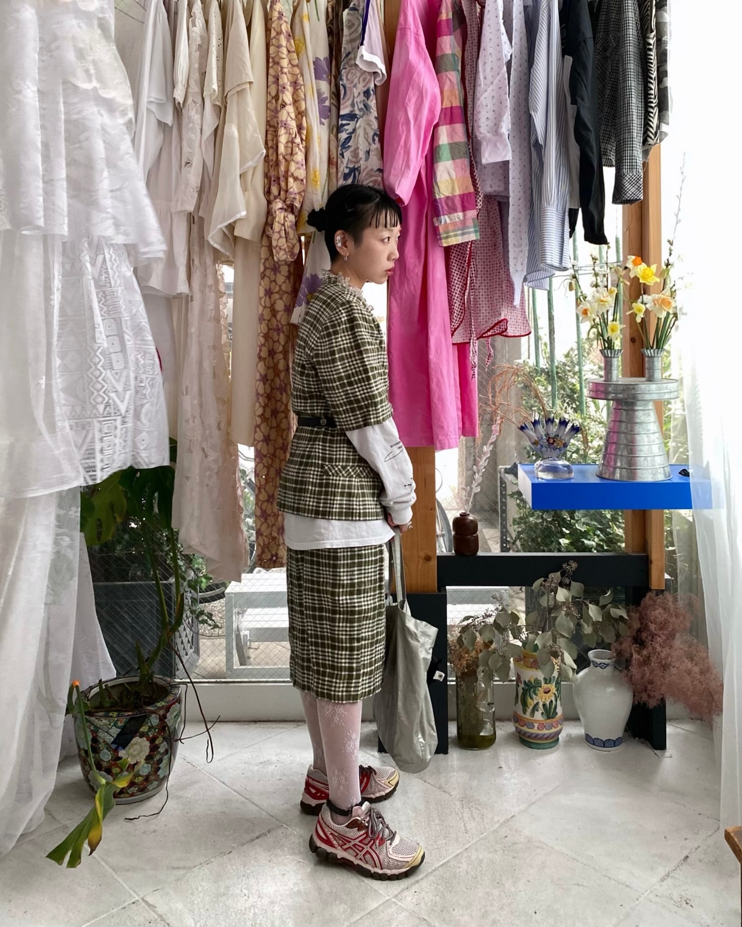 特にボトムは大股では歩きにくいのですが、思わず所作までもキチンと正したくなる様な背筋の伸びる一着。