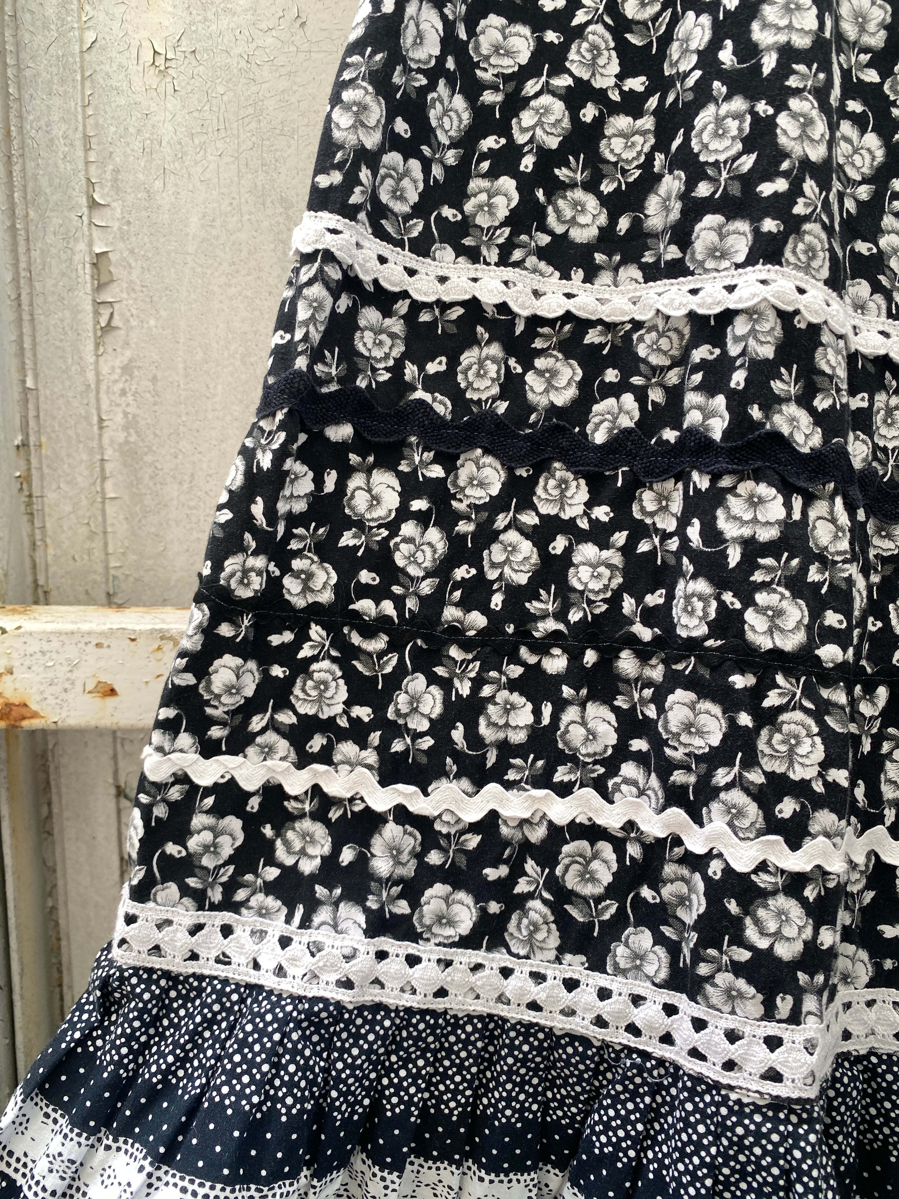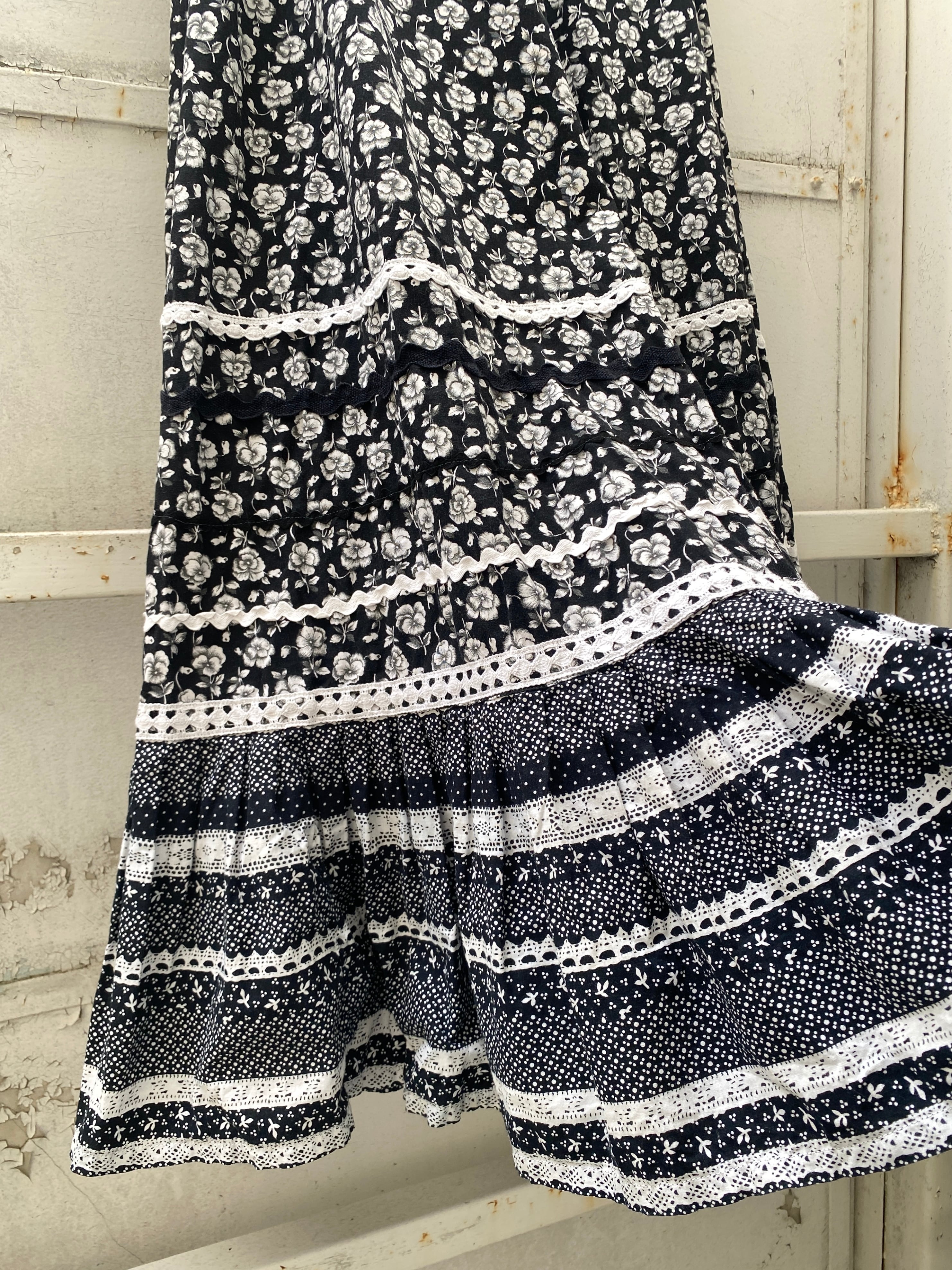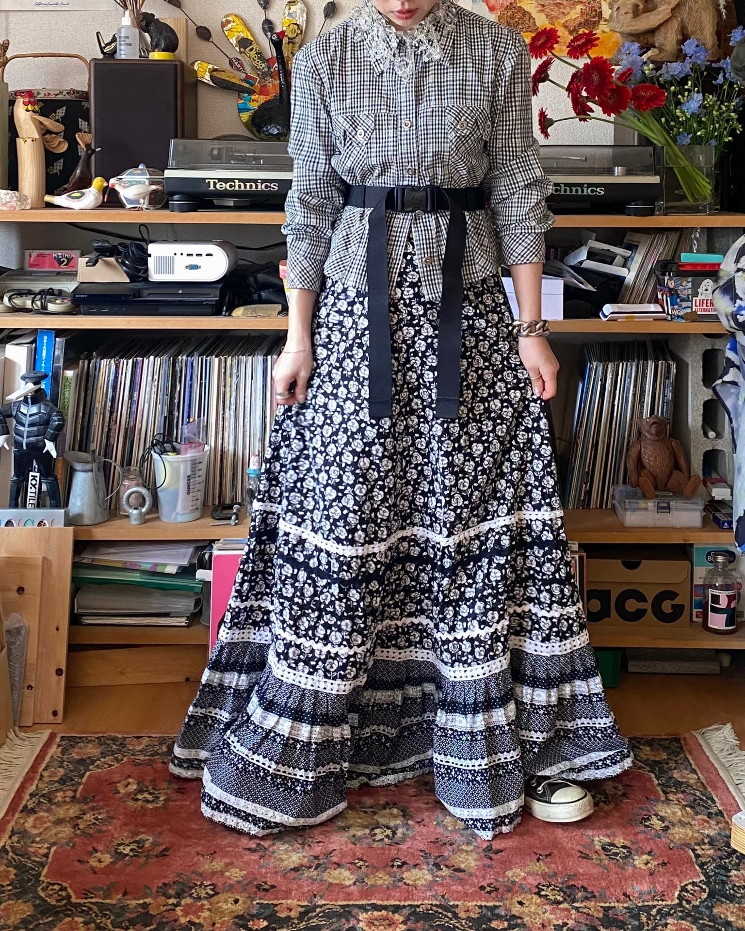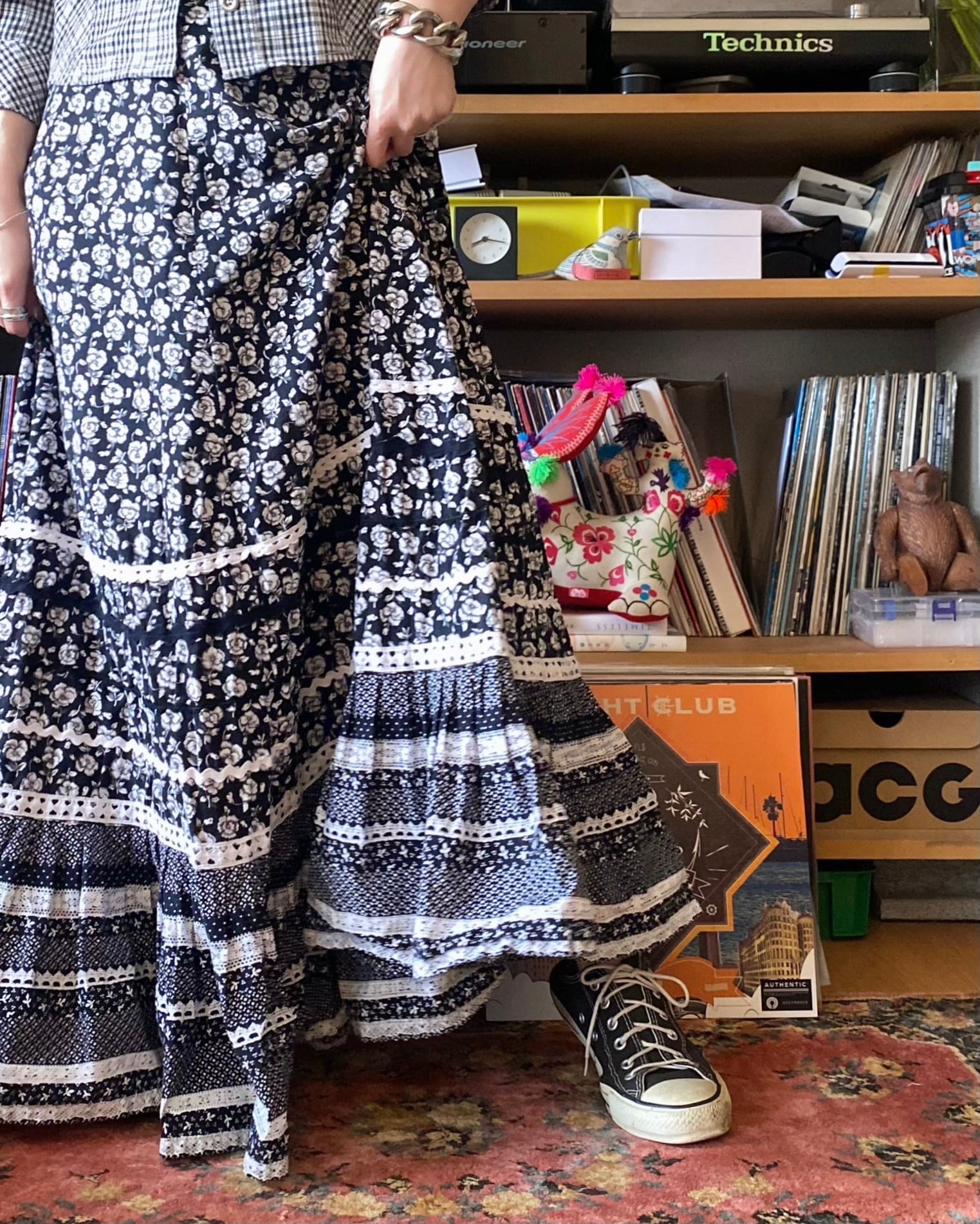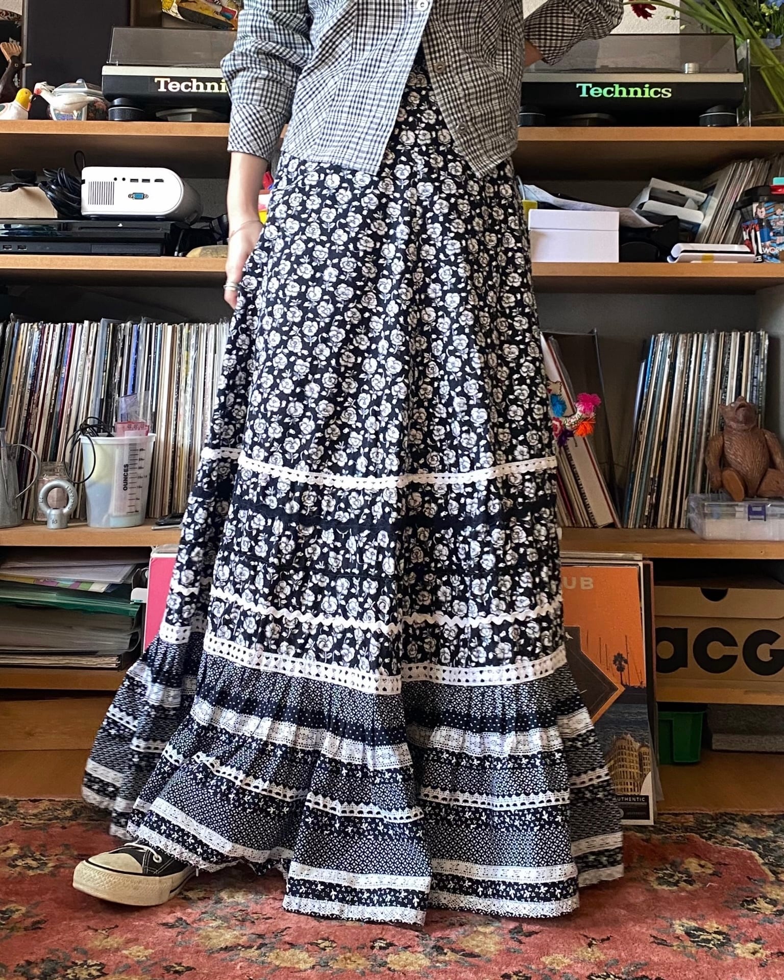 2種のモノトーンテキスタイルをセンスよく組み合わせたコットンマキシスカート。