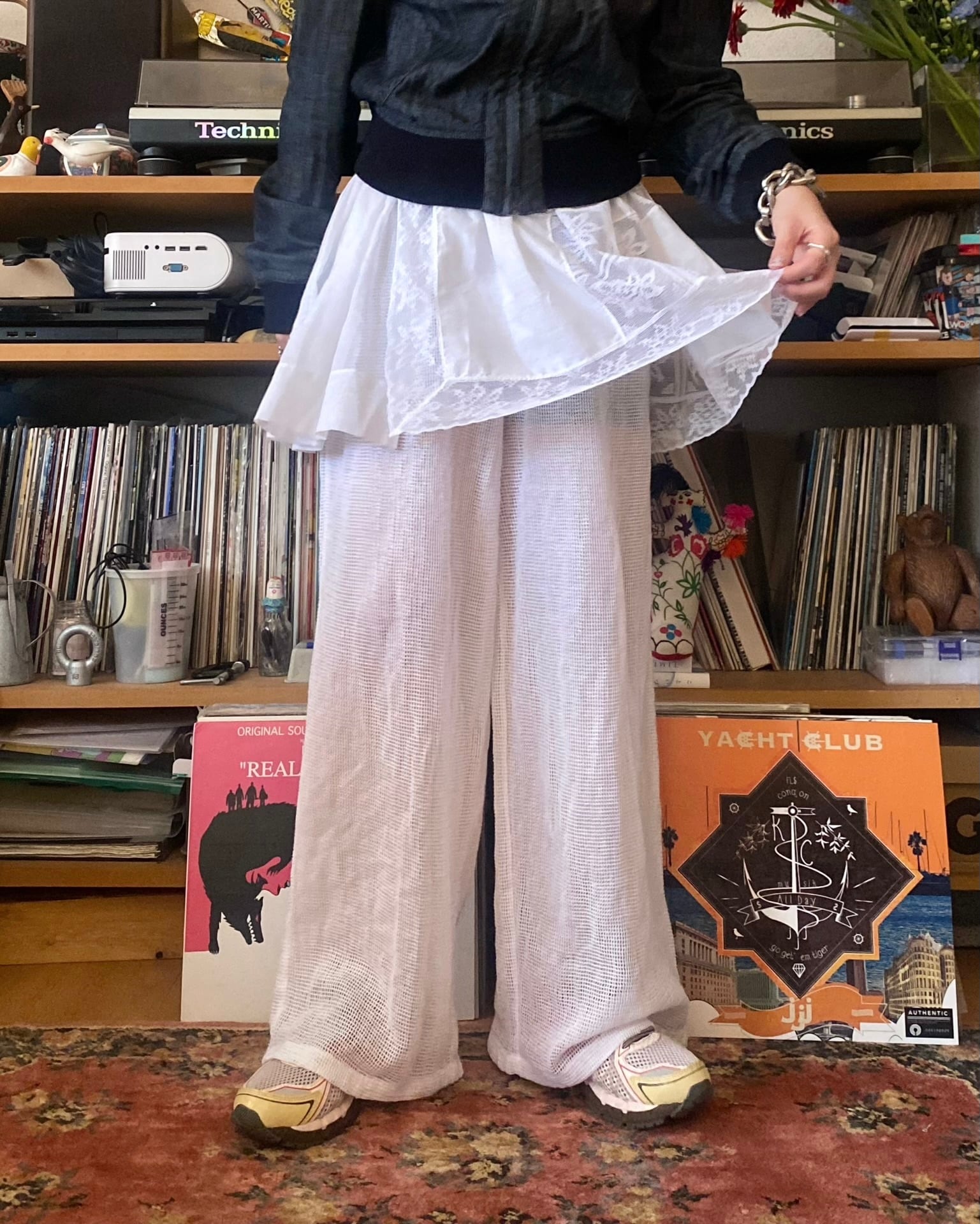 程よいシアー感が汎用性高い総メッシュのワイドパンツ。