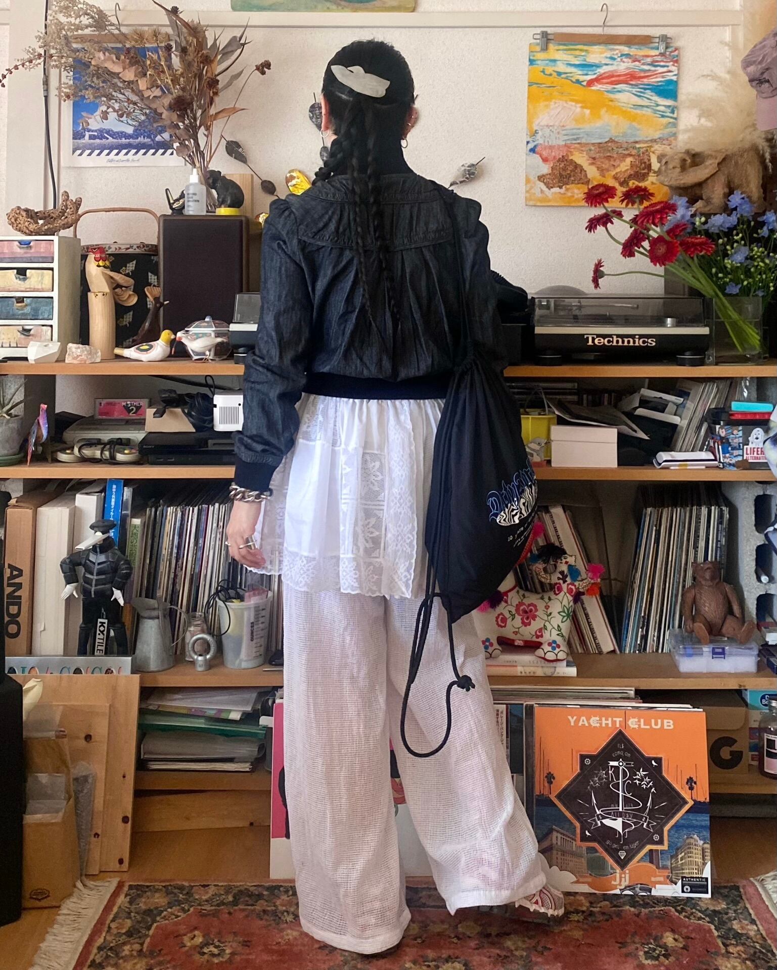 シアー感があるのにどちらかと言うと、ナチュラルでヘルシー、リラックスなムードの方が強く感じるのは素材とワイドなシルエットのお陰だと思います。
