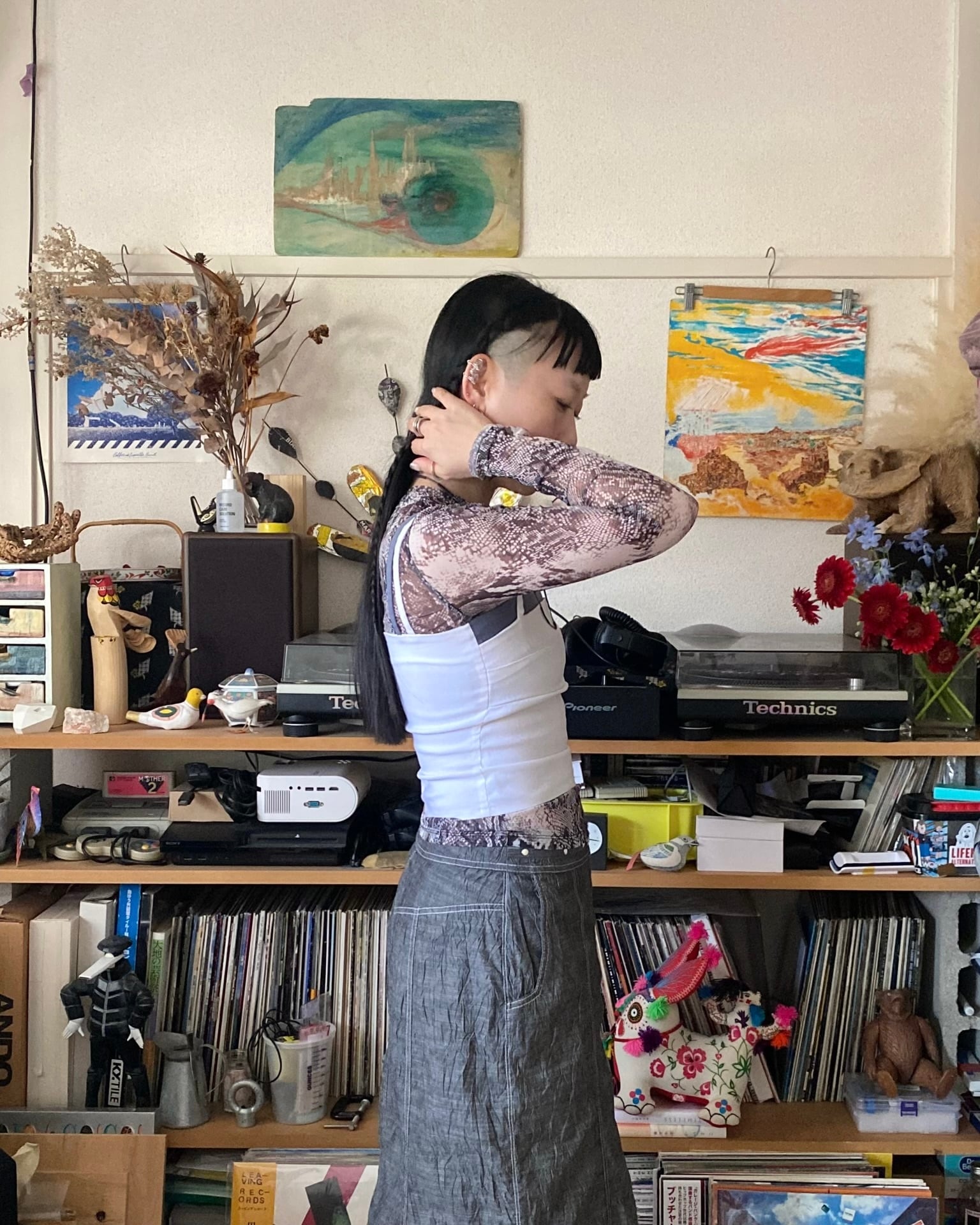 キャミソールの紐が2本連続してるのがポイント、1本は使用しもう1本は腕に垂らしてみたりと着こなしによって遊びの幅が出そうなのも◎