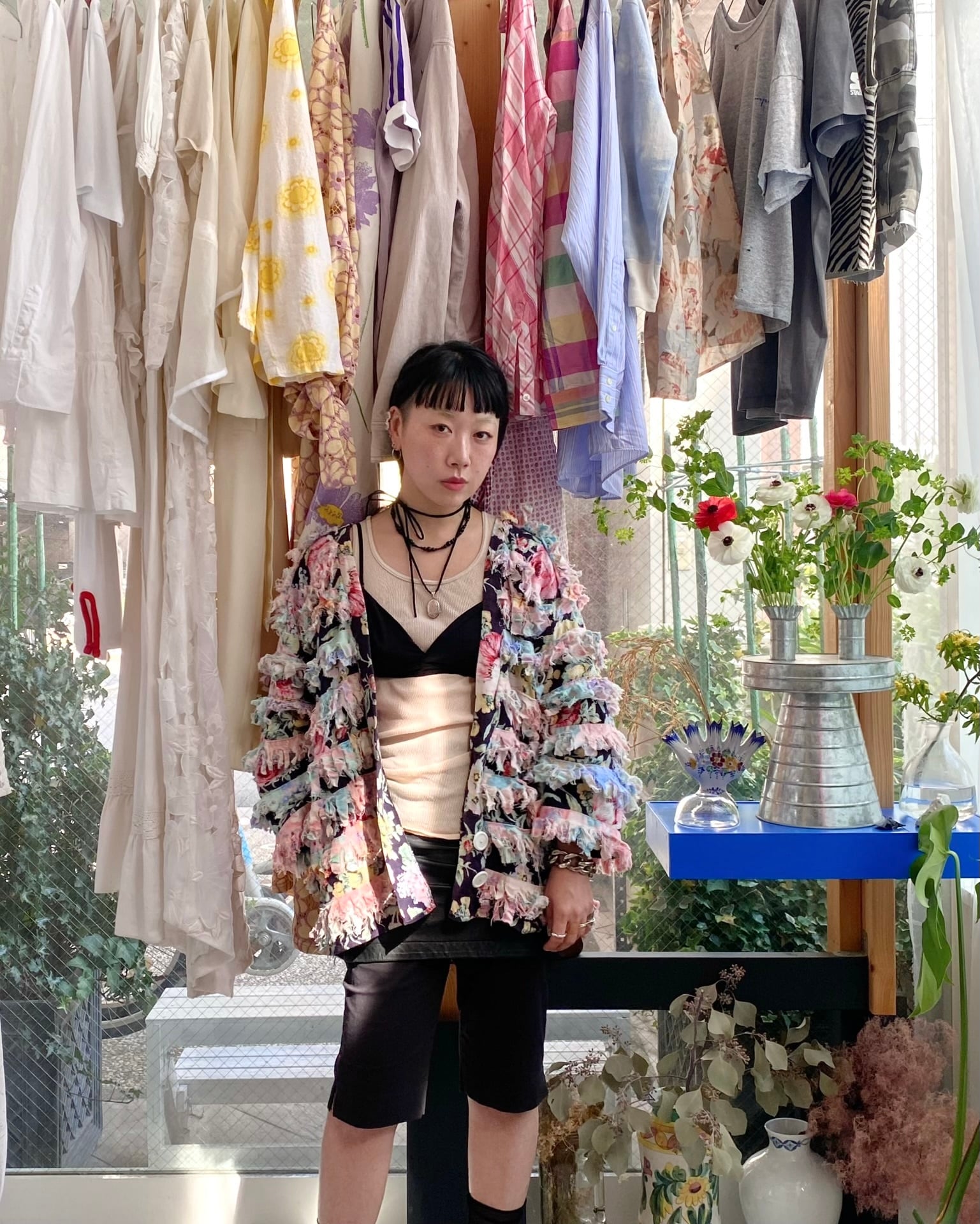 切りっぱなしのコットン生地はハンドクラフト感とエッジがあり、可愛さとどことなくハードな雰囲気が共存しています。