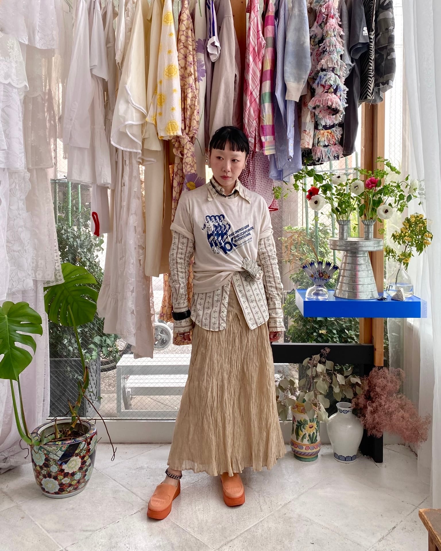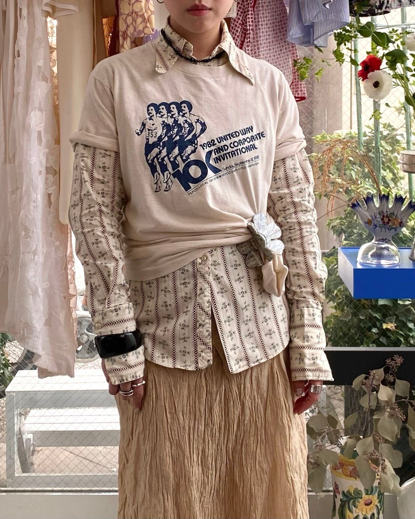 これこそビンテージならでは、ミックス感溢れるコーデに加えてより個性的な着こなしを。