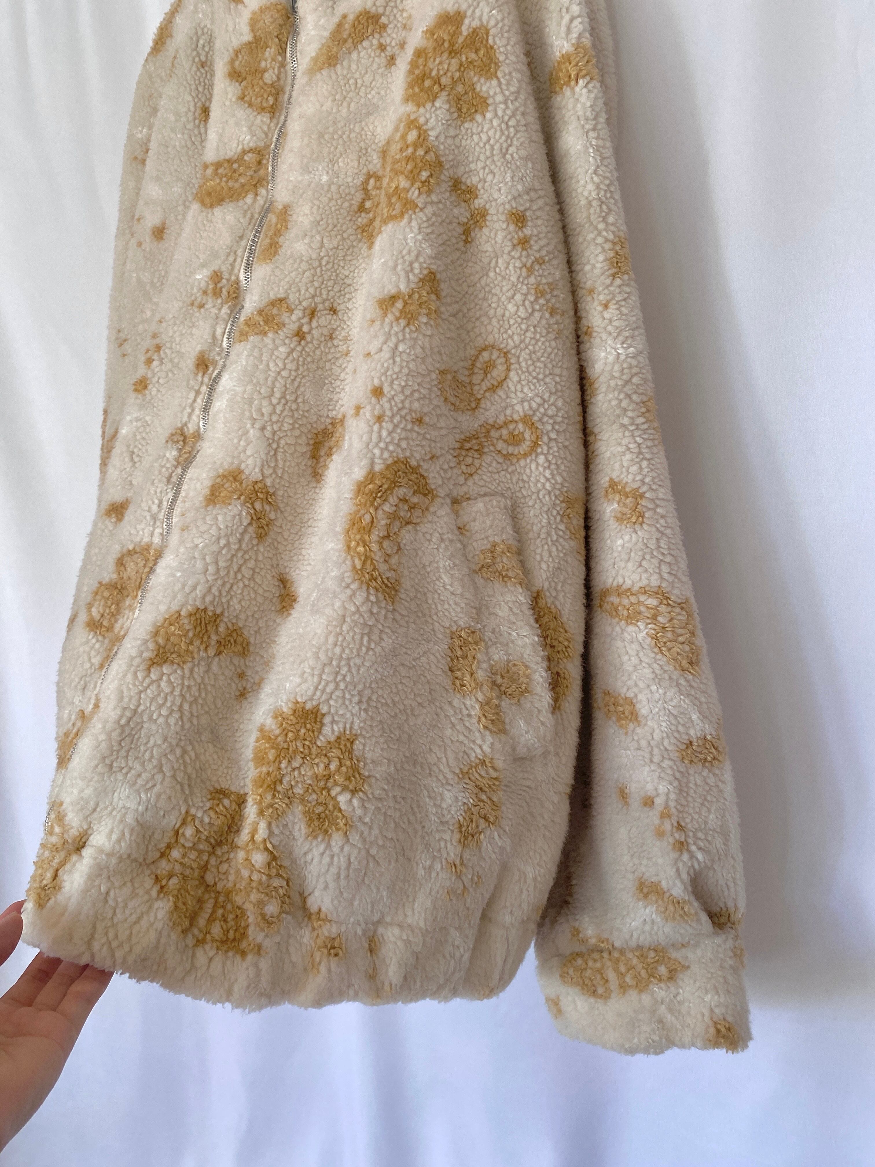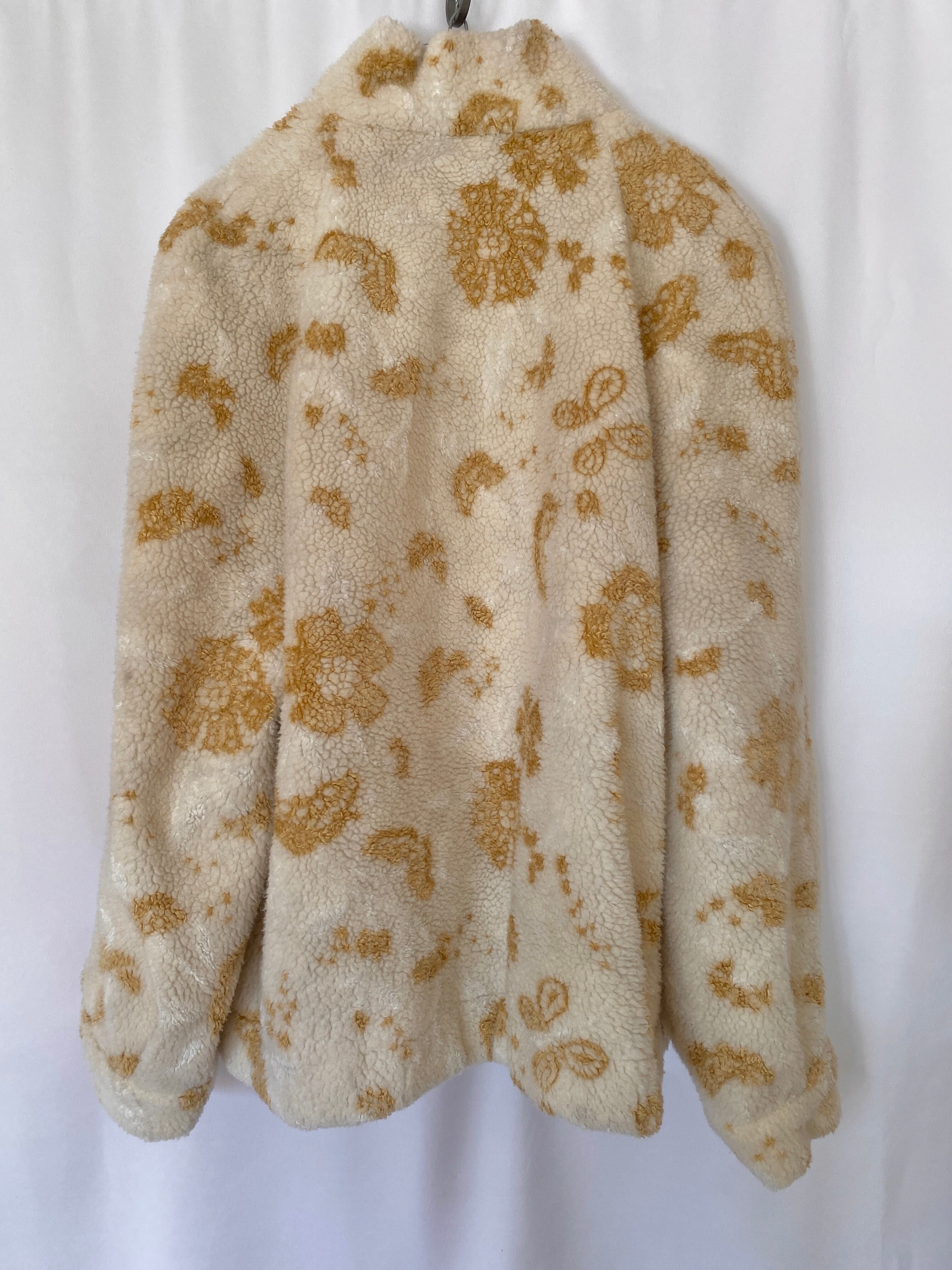 ベージュと白で構成された花、蝶々、ペイズリーなどの総柄はちょっとデフォルメされていて可愛いらしい甘さのある雰囲気に。