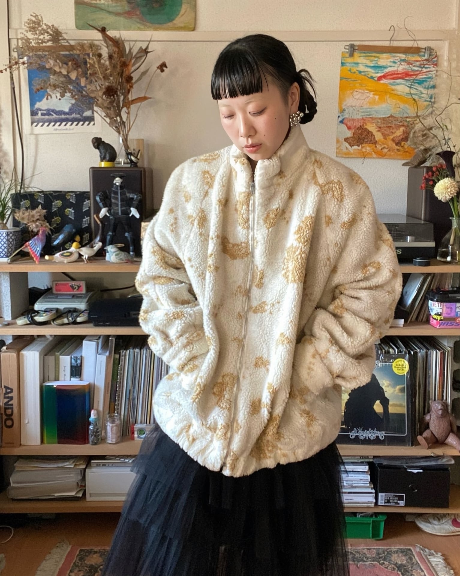 あまり厚みのないボアなので冬は重ね着が良いかと思います。