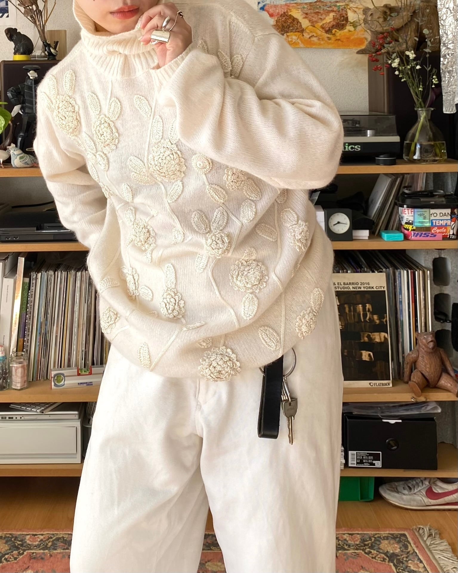 ※素材の特性上、着用時インナーやアウター等にアンゴラの毛が付く可能性がございます。黒アイテムとの着用はお気をつけくださいませ。