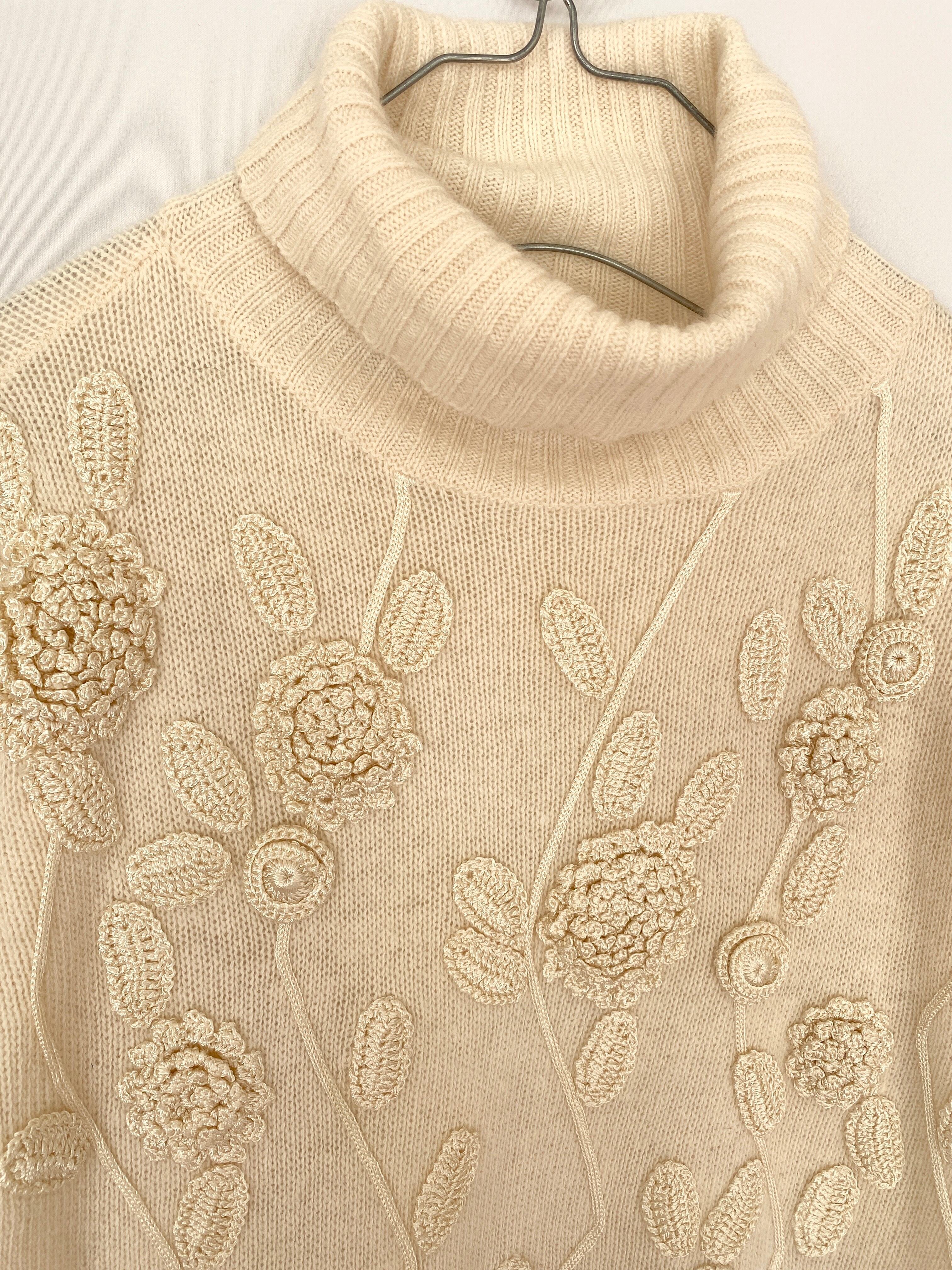 フワッとした起毛のアンゴラは比較的チクチクしにくいのでセーターが苦手な方にも着やすい素材かと。