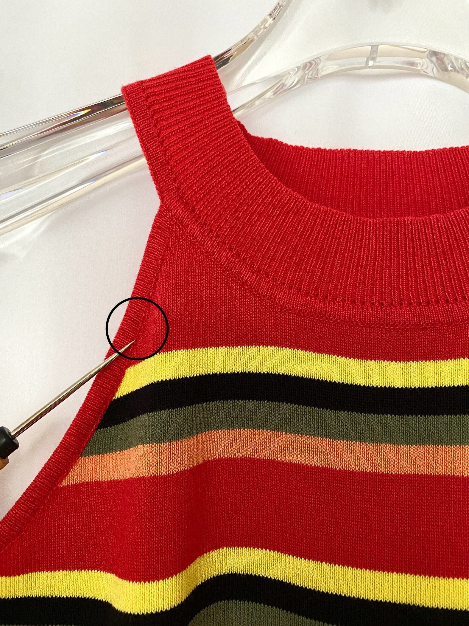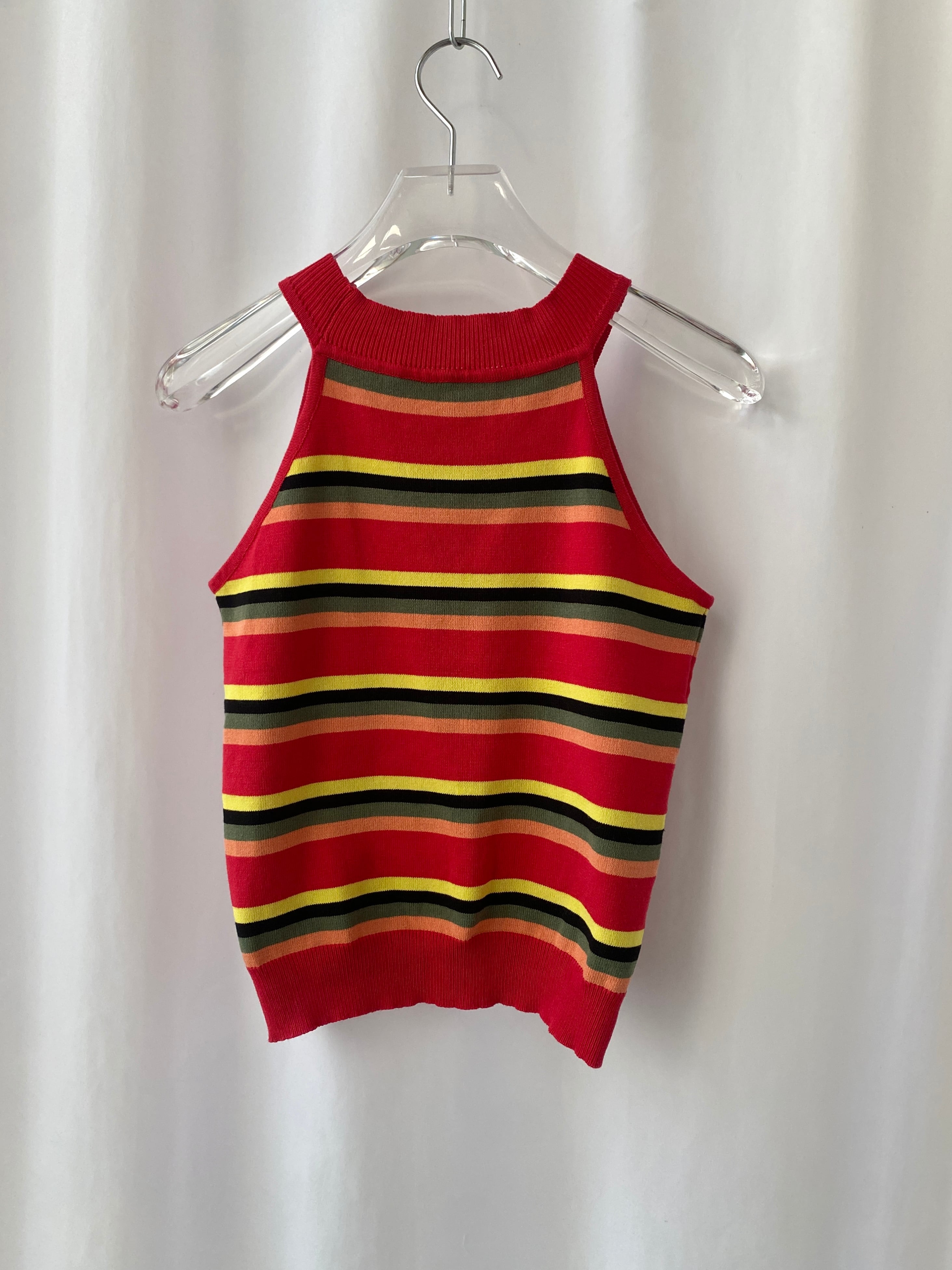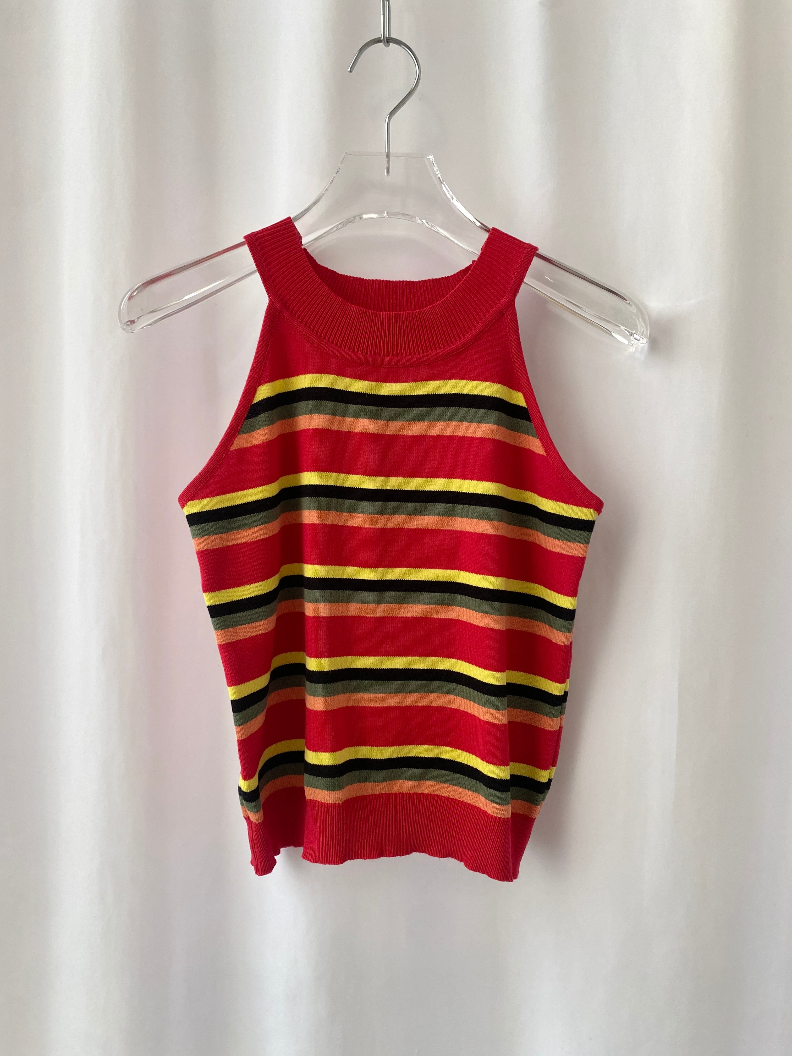 赤をベースとしたeuroものならではの配色が魅力的なニットトップス。