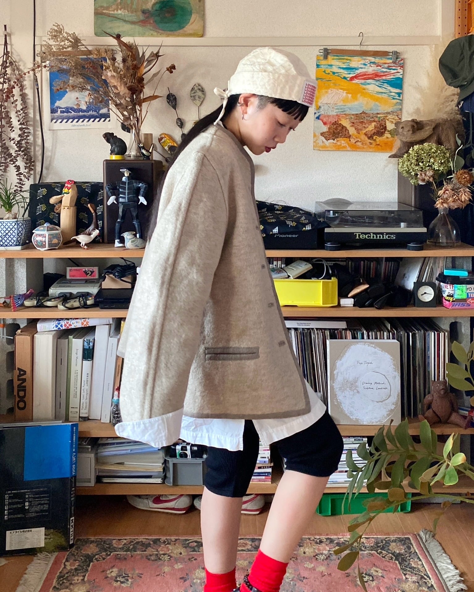 通常のウールコートとは違い、裏地なしなので秋にサラッと羽織るジャケットとしておすすめ。
