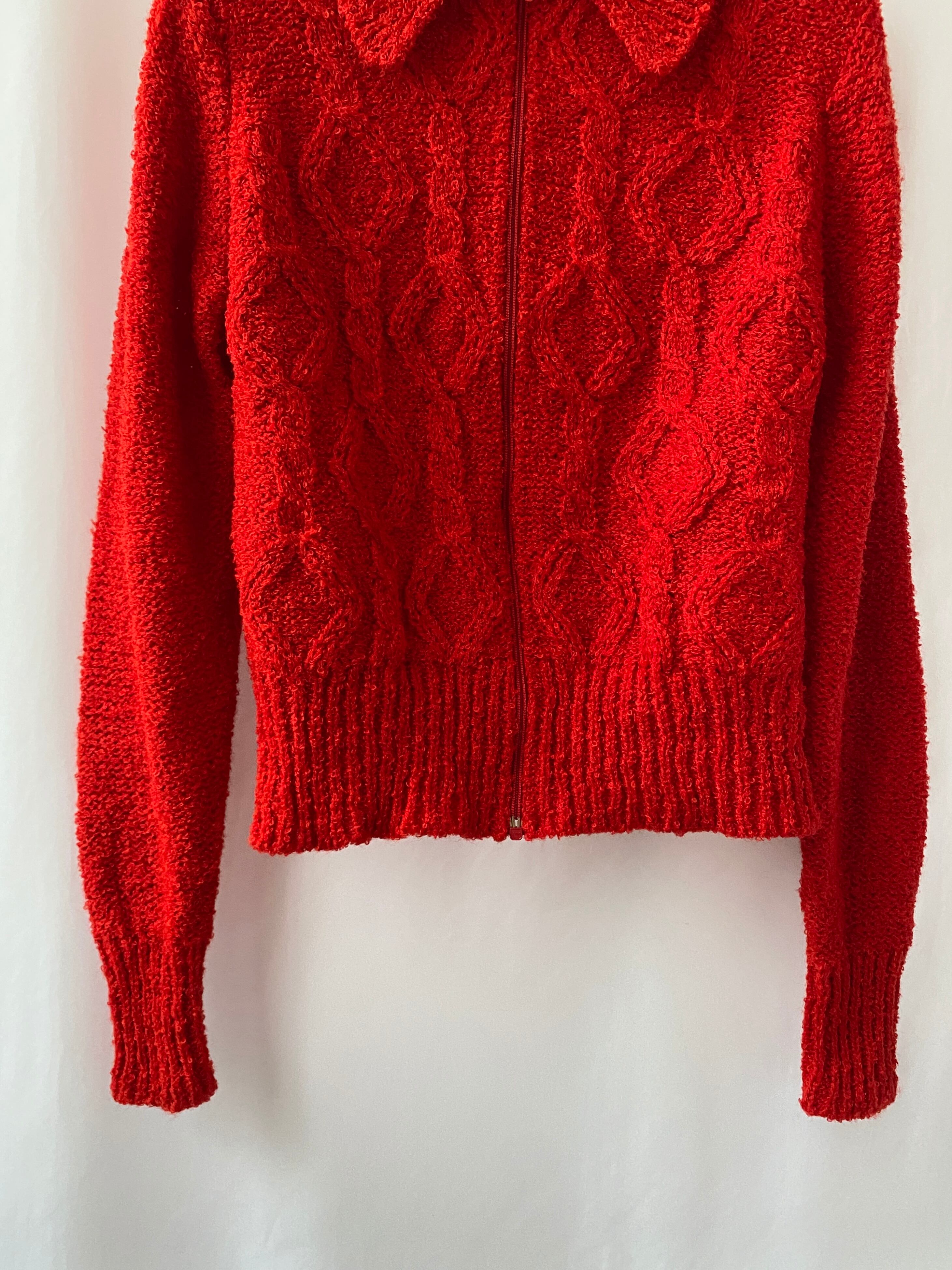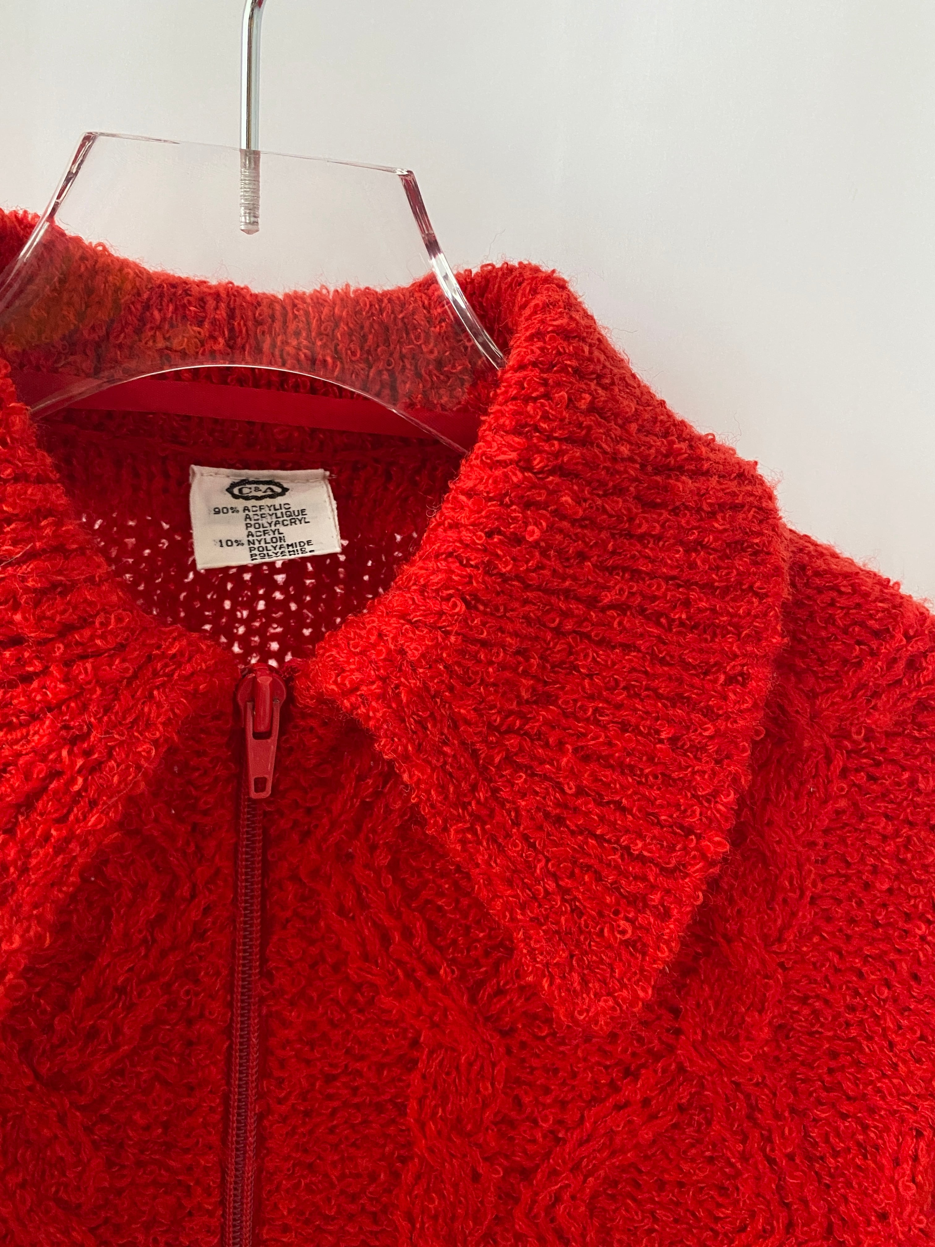 ループ状のアクリル毛糸で編まれているzip upセーター。