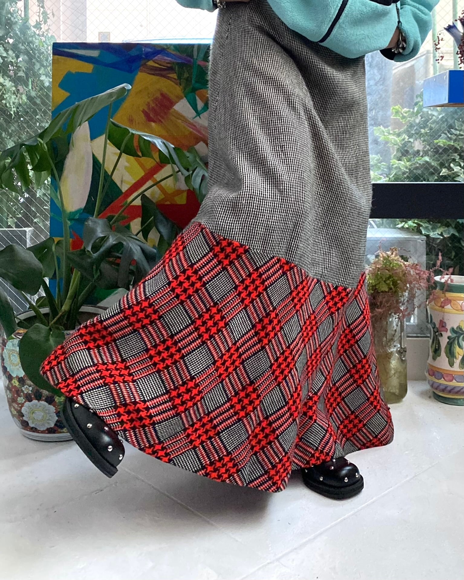 膝下のグレンチェックの切り替えがポイントのマキシスカート。