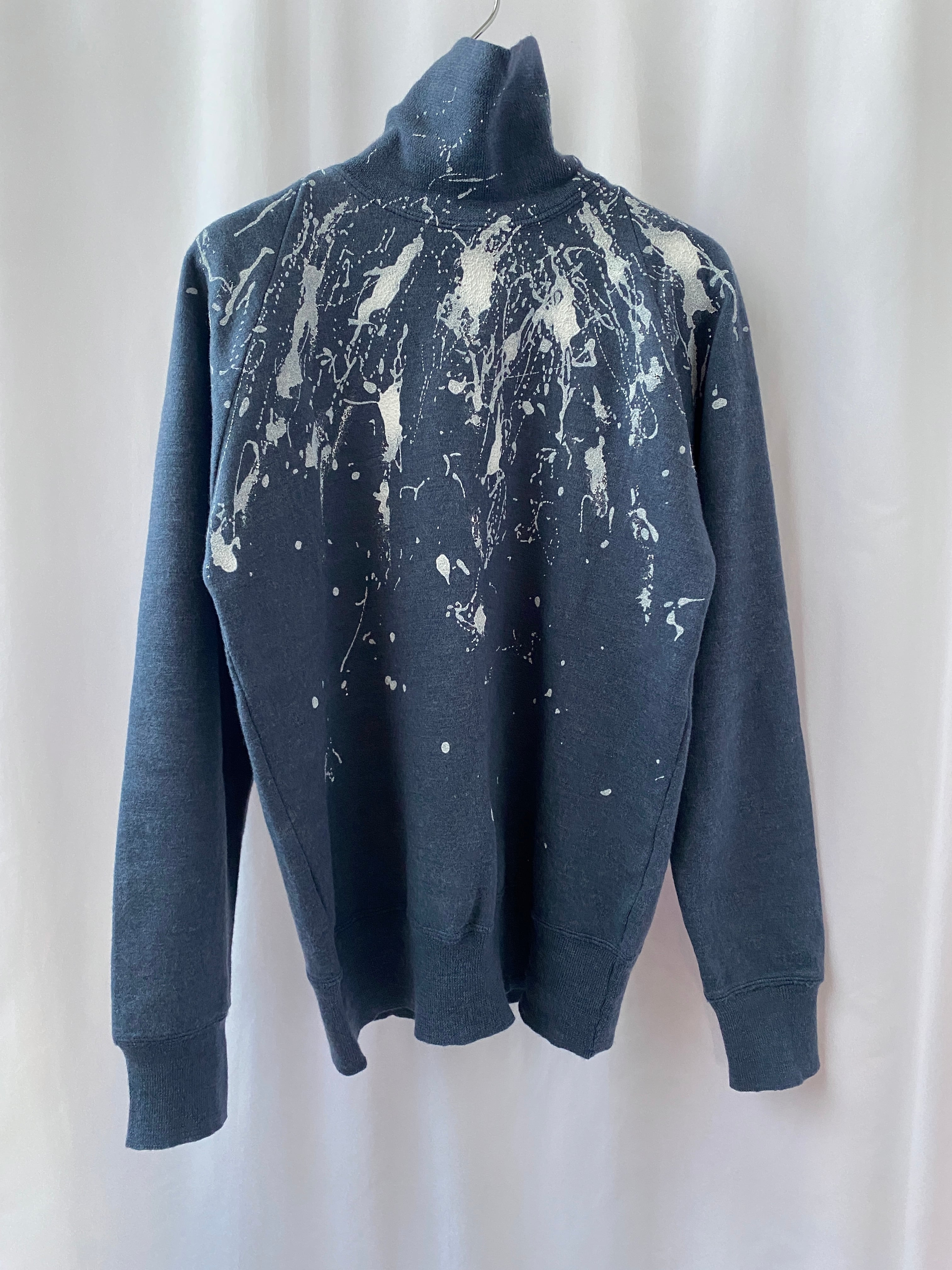 デッドストックの軍用セーターに大胆に飛び散ったペイントが印象的なリメイクセーター。