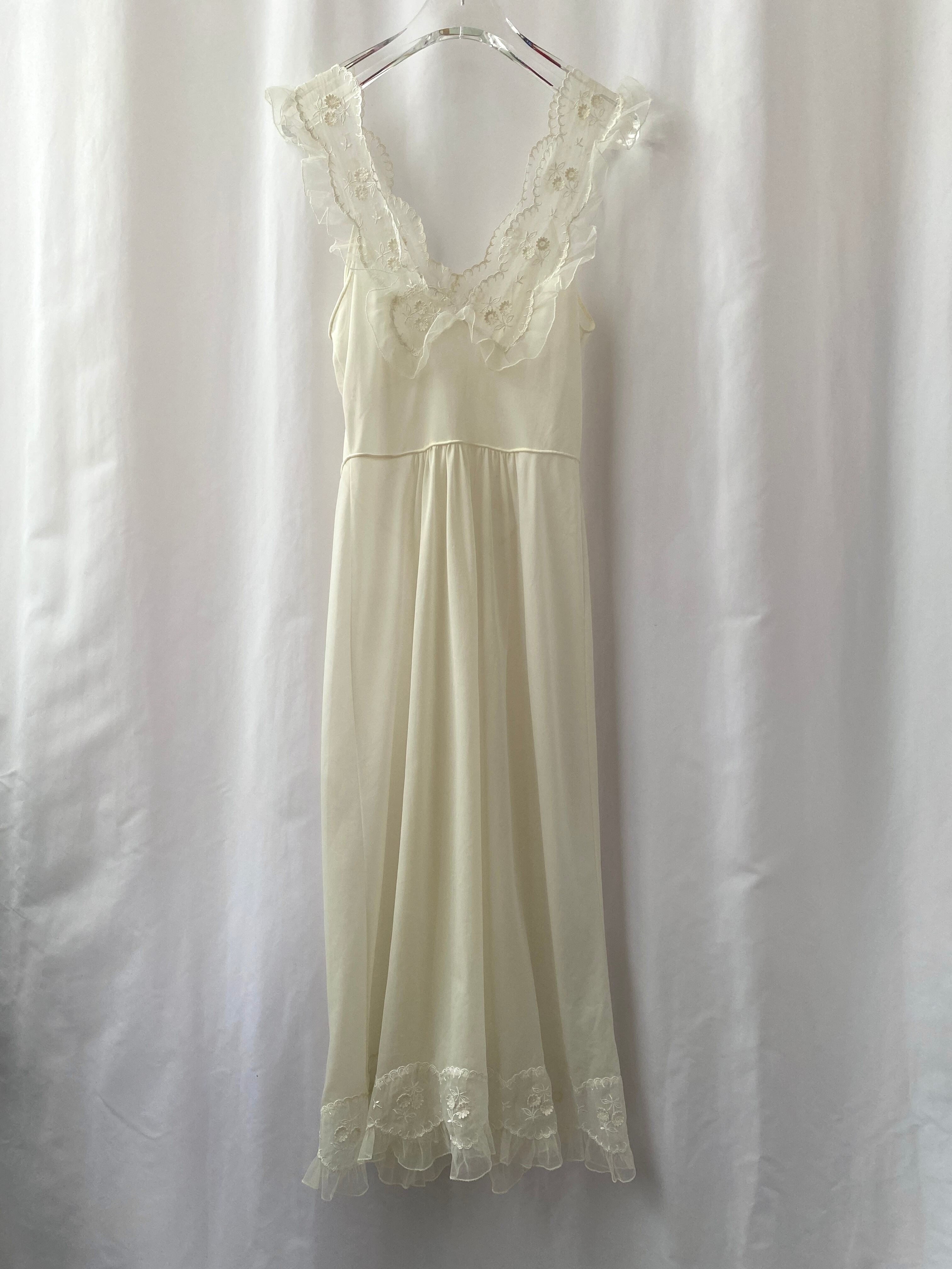 繊細な刺繍にシアー素材のフリルが美しいランジェリードレス。